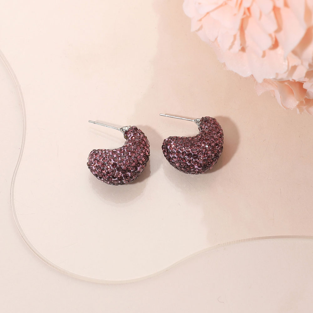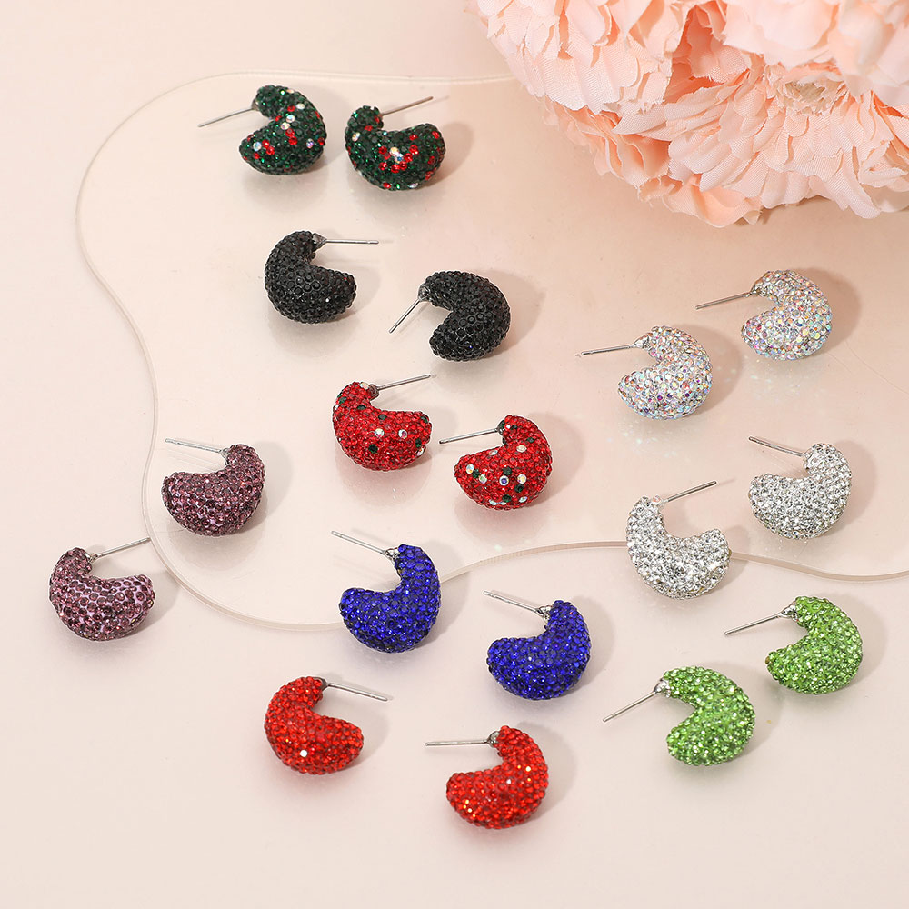 Details • Size : 0.7" X 0.9" • Post Back • Compact hoop earrings featuring dazzling rhinestone detailing for a subtle yet striking shine. Perfect for adding a touch of glamour to casual or formal looks. Lightweight and comfortable, these small hoops bring elegance and sophistication to any jewelry collection or outfit. • Lead and Nickel Compliant