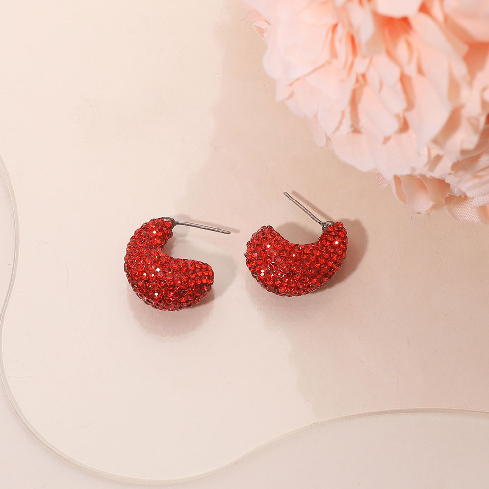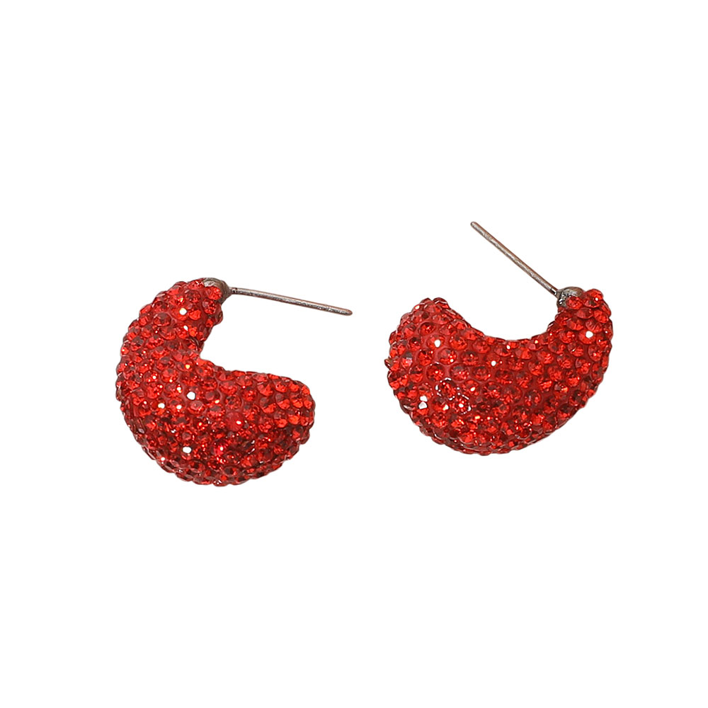 Details • Size : 0.7" X 0.9" • Post Back • Compact hoop earrings featuring dazzling rhinestone detailing for a subtle yet striking shine. Perfect for adding a touch of glamour to casual or formal looks. Lightweight and comfortable, these small hoops bring elegance and sophistication to any jewelry collection or outfit. • Lead and Nickel Compliant