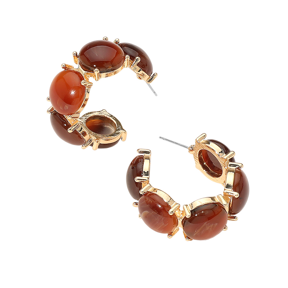 • Add earthy elegance to your outfit with these gold hoop earrings featuring bold oval gemstone-like accents. Their rich finish and sculptural design bring a luxe boho vibe to both casual and formal looks. A standout accessory for confident, modern styling.