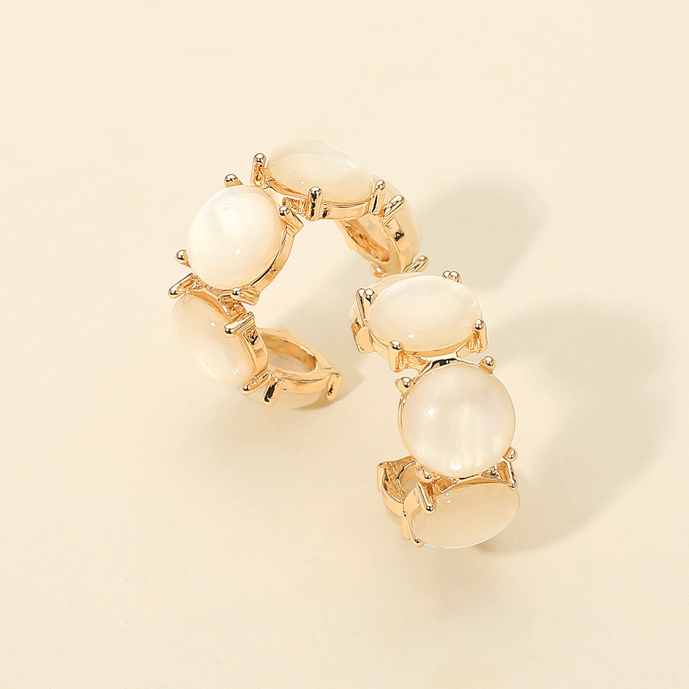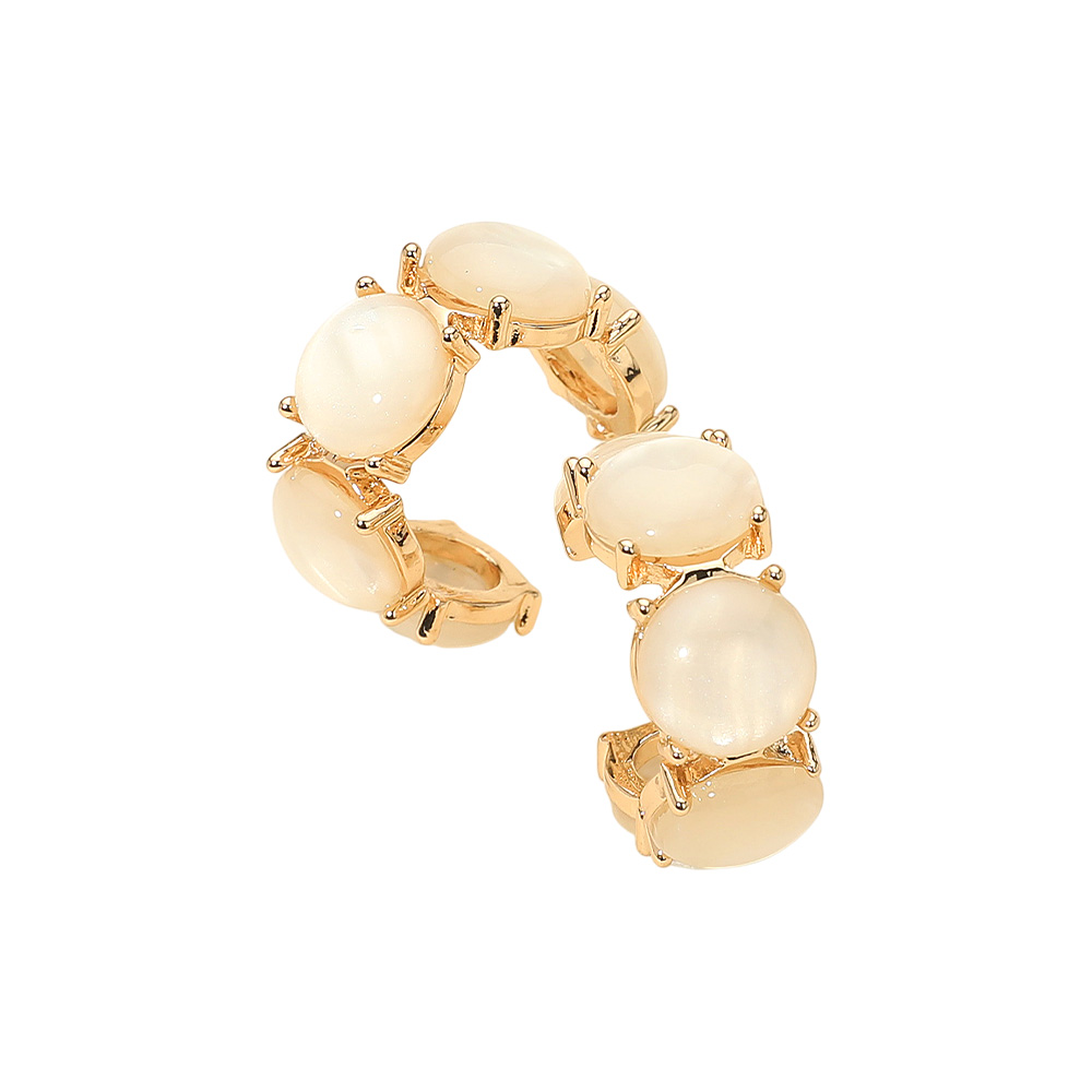 • Add earthy elegance to your outfit with these gold hoop earrings featuring bold oval gemstone-like accents. Their rich finish and sculptural design bring a luxe boho vibe to both casual and formal looks. A standout accessory for confident, modern styling.