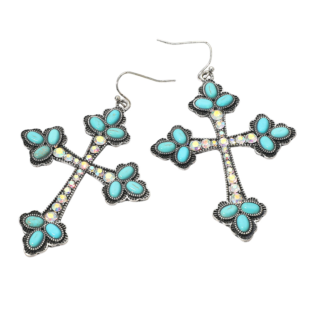 Details • Size : 1.9" X 3" • Fish Hook Back • Bold boho cross drop earrings featuring beaded accent details arranged in a floral-inspired layout, perfect for making a statement. Ideal for adding expressive style to festival outfits, casual looks, or layered accessory combinations with a vintage-inspired touch. • Lead and Nickel Compliant