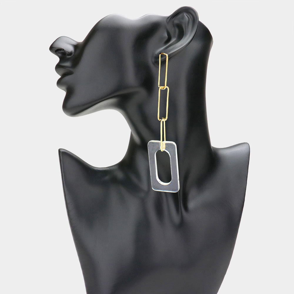 Bold Resin Square Link Paperclip Chain Drop Earrings