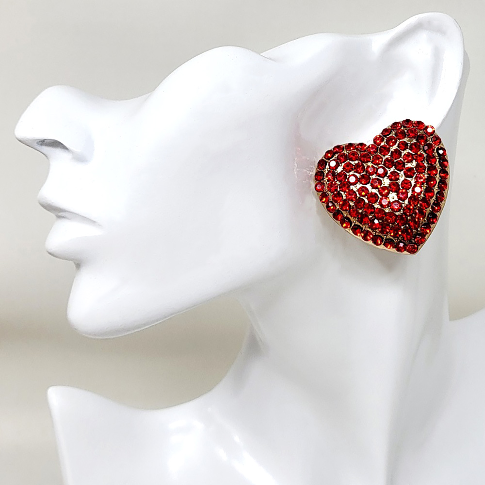 Bold Rhinestone Paved Heart Earrings