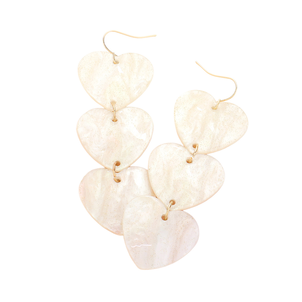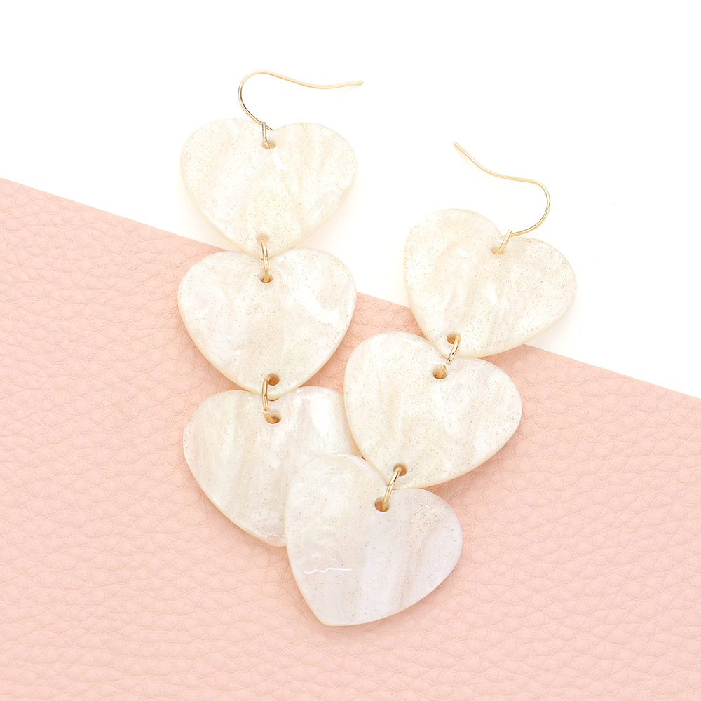 Celluloid Acetate Pearl Heart Link Dropdown Earrings