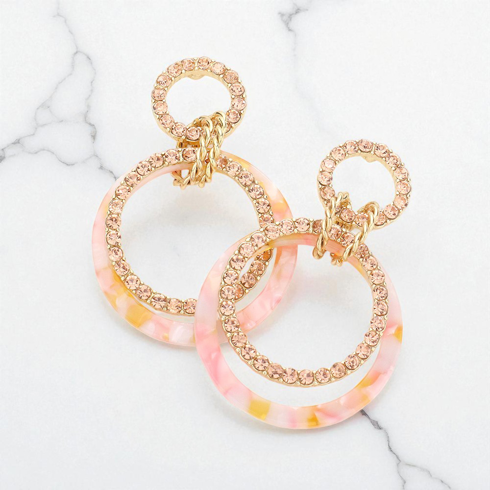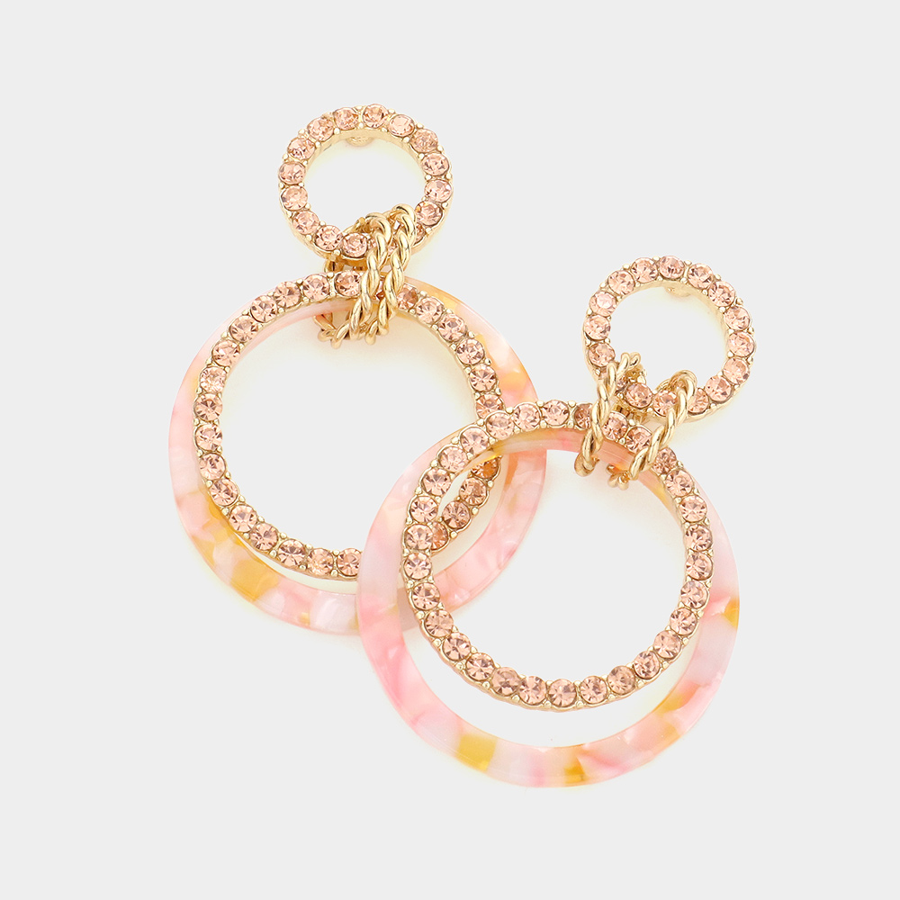 Celluloid Acetate Rhinestone Embellished Open Circle Link Dangle Earrings
