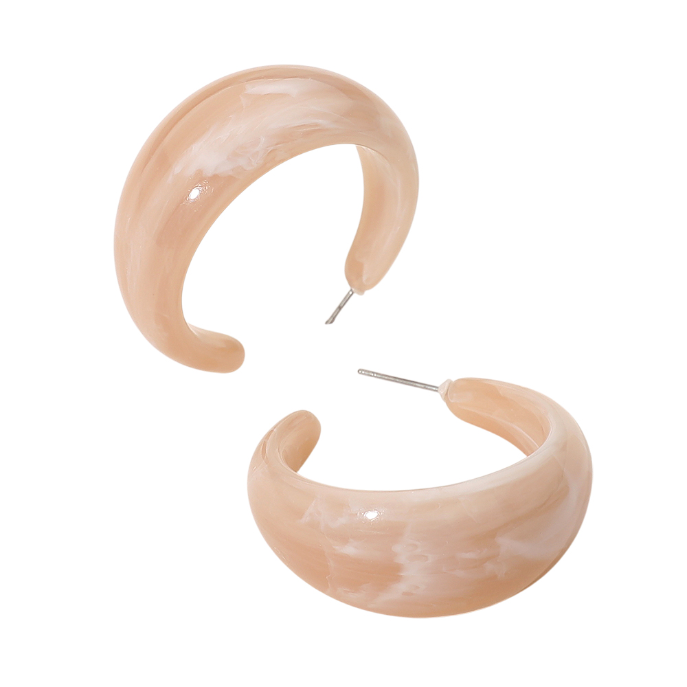 Details • Size : 1.5" X 1.5" X 0.7" • Post Back • Chunky marbled hoop earrings featuring a smooth rounded silhouette that adds a soft, modern touch to any outfit. Lightweight and easy to style, these hoops are perfect for everyday wear, gifting, or elevating casual and dressy looks with effortless contemporary flair. • Lead and Nickel Compliant
