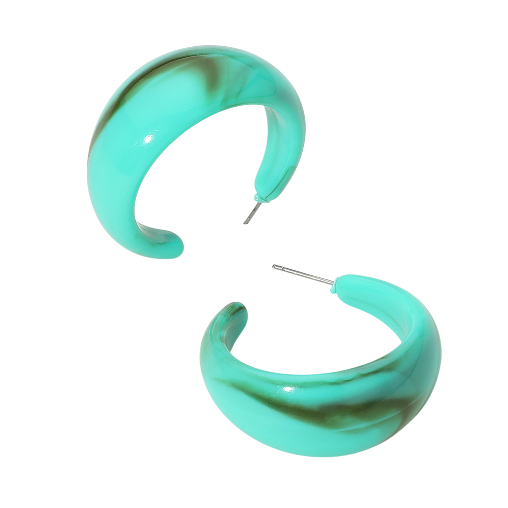 Details • Size : 1.5" X 1.5" X 0.7" • Post Back • Chunky marbled hoop earrings featuring a smooth rounded silhouette that adds a soft, modern touch to any outfit. Lightweight and easy to style, these hoops are perfect for everyday wear, gifting, or elevating casual and dressy looks with effortless contemporary flair. • Lead and Nickel Compliant