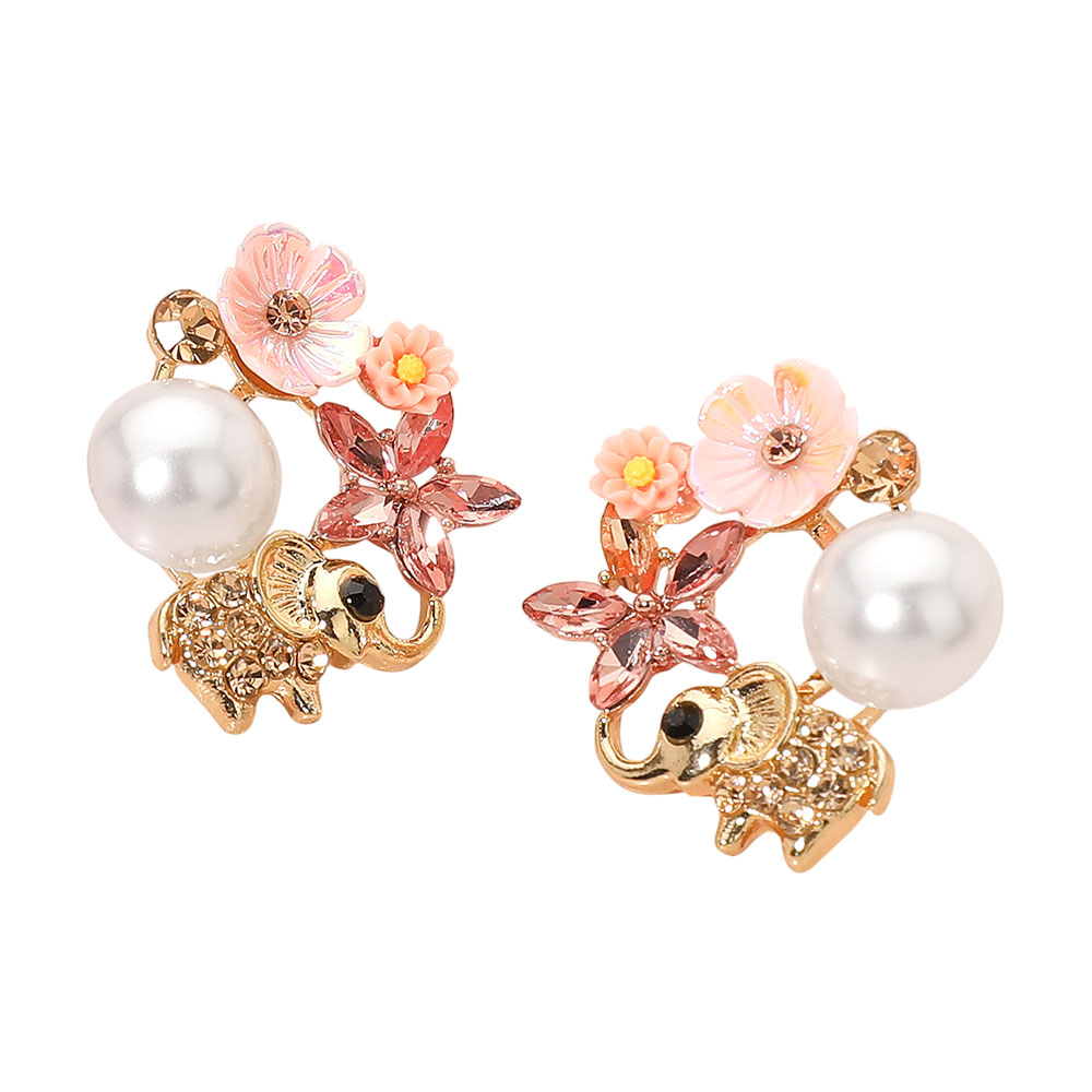 • Whimsical stud earrings featuring adorable elephant charms adorned with crystals, delicate floral details, and luminous pearl accents. A charming accessory that blends playful design with elegant sparkle, perfect for adding personality to casual or dressy looks.