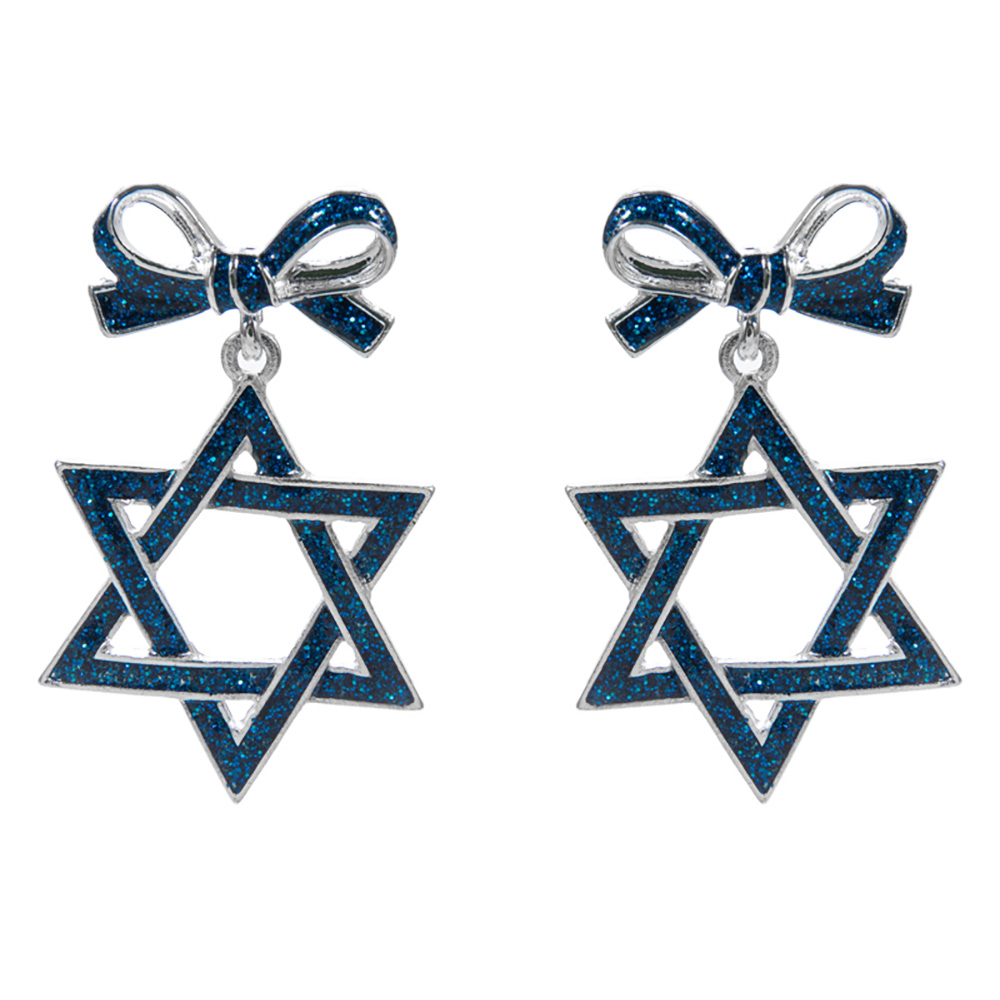 • Add charm and tradition to your look with these Star of David dangle earrings featuring sparkling bow accents. A meaningful accessory perfect for holidays, festive occasions, or daily wear, combining cultural symbolism with playful, elegant style.