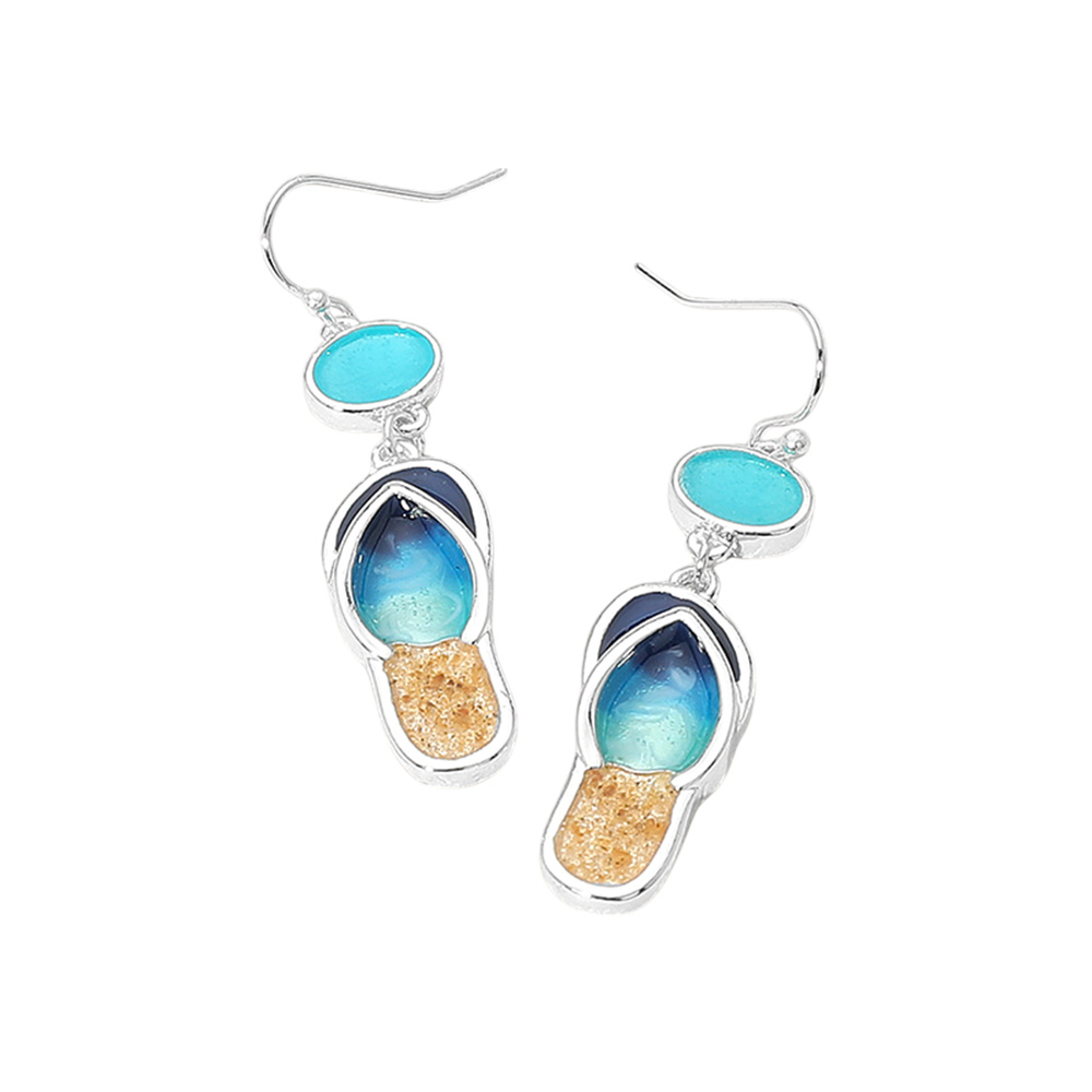 Enamel Flip Flop Sea Glass Link Dangle Earrings