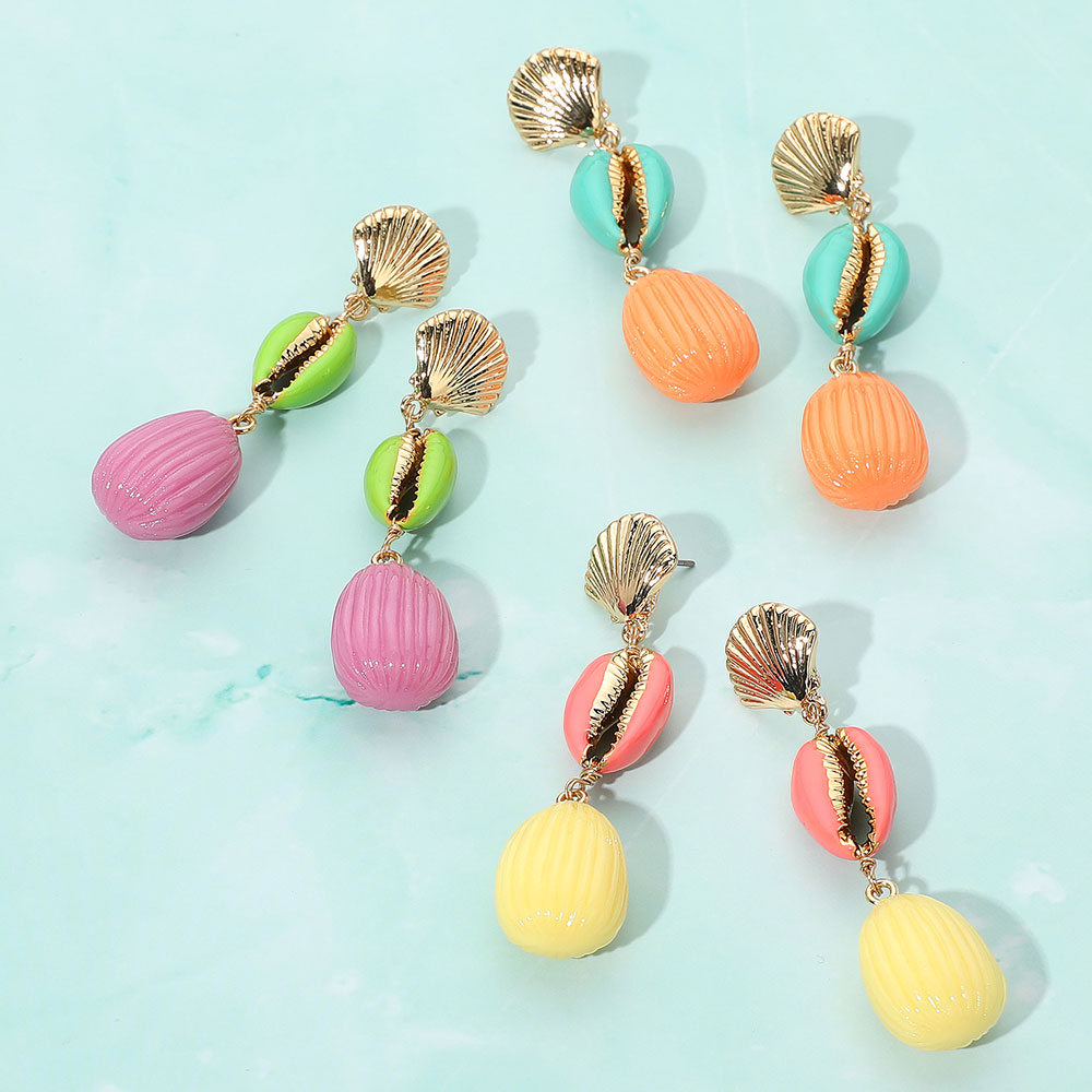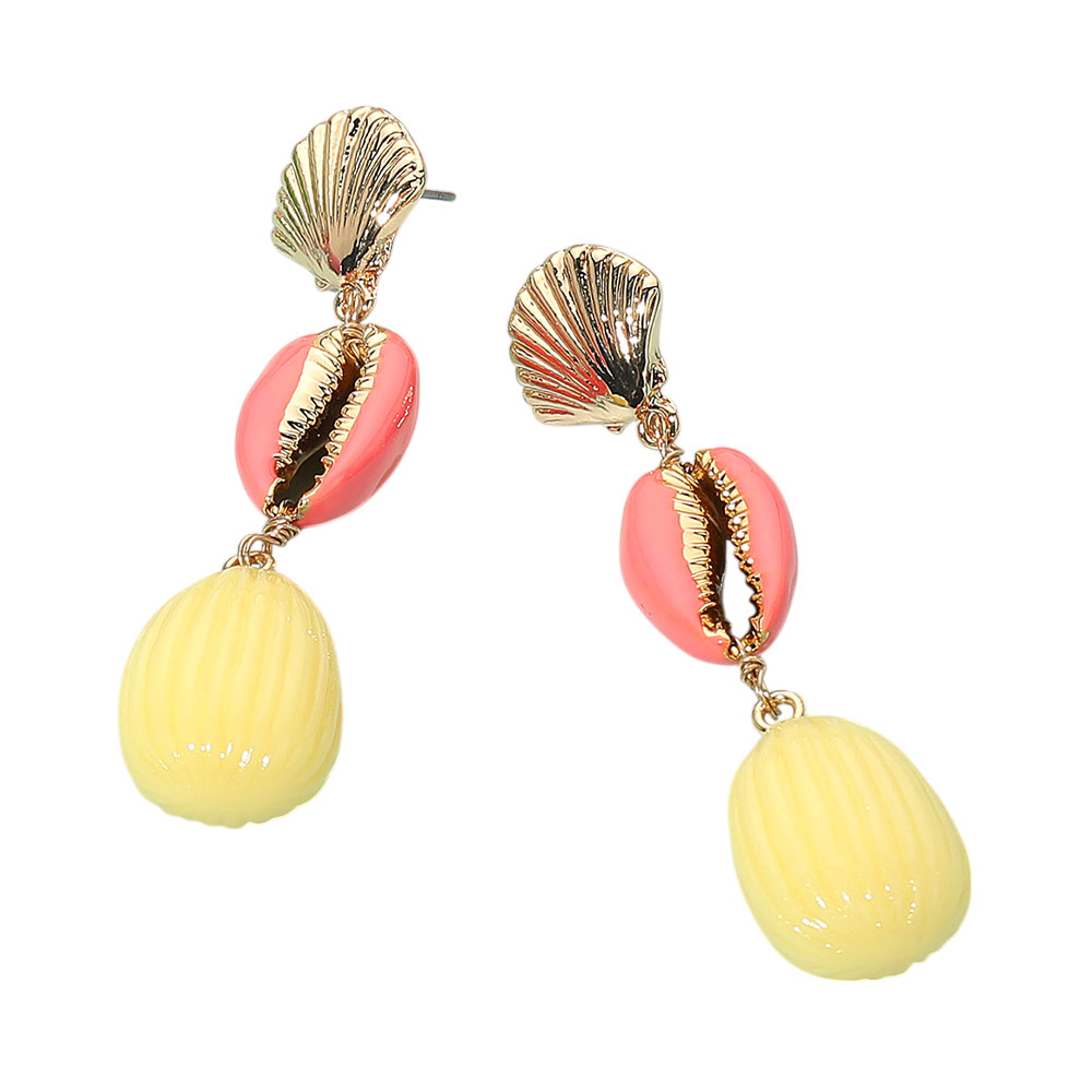 Details • Size : 0.7" X 2.6" • Post Back • Bring seaside charm to your look with these shell drop earrings, designed with a playful blend of textures and shapes. Perfect for vacations, summer outfits, or adding a beach-inspired statement to everyday style. • Lead and Nickel Compliant