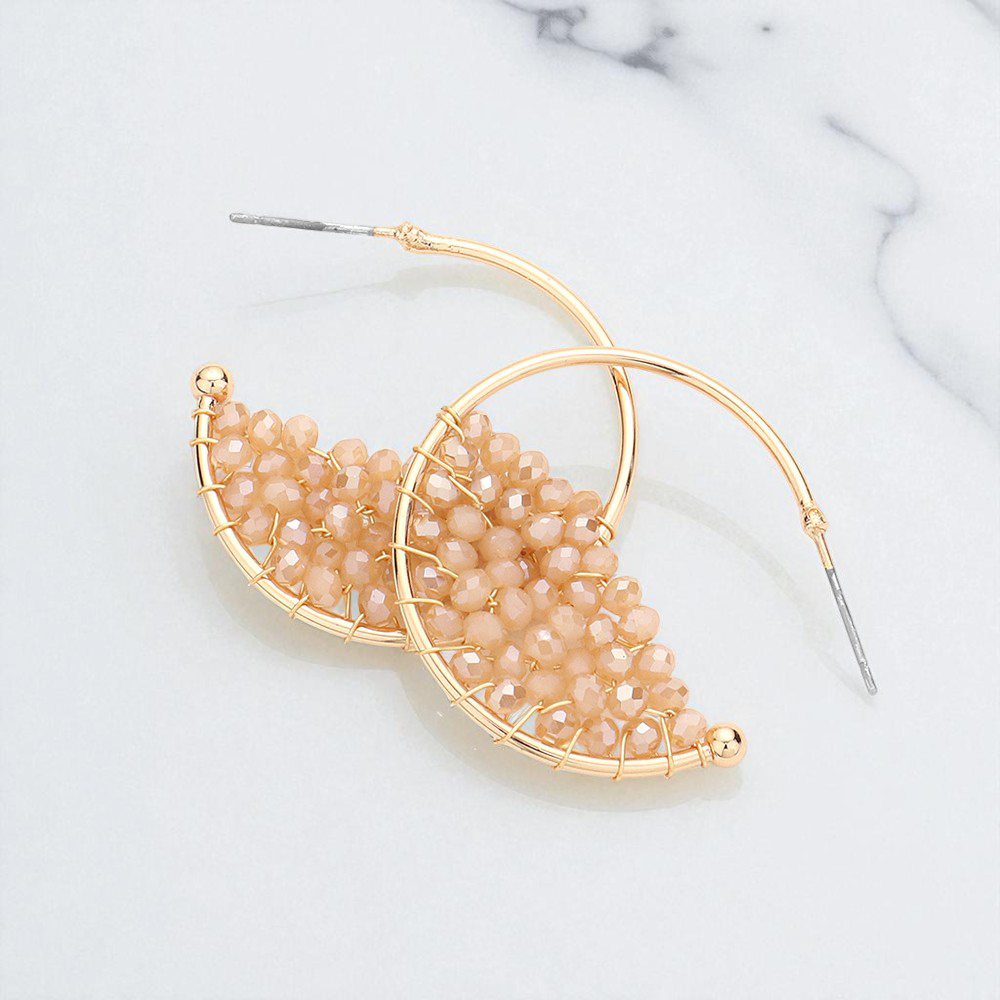 Hammered Metal Stone Beaded Open Teardrop Dangle Earrings