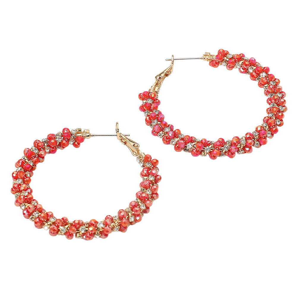 Details • Size : 1.75" L • Omega Back • Elevate your style with these beaded hoop earrings featuring shimmering accents. Bold yet lightweight, they bring sparkle and charm to any look, perfect for parties, date nights, or everyday wear with a touch of glamour. • Lead and Nickel Compliant