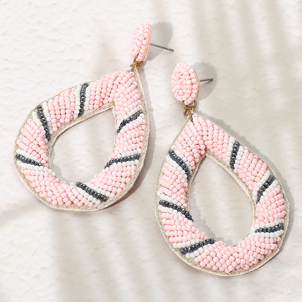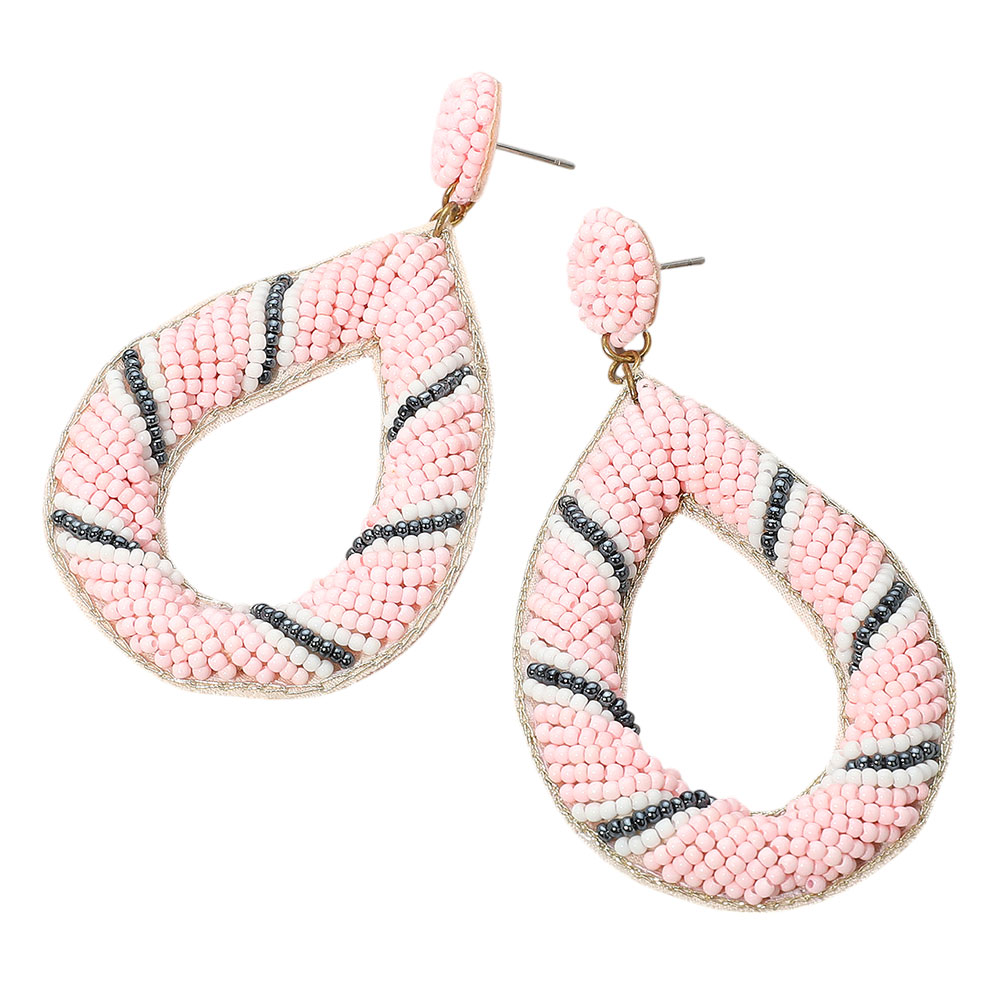 Details • Size : 1.75" X 3.5" • Post Back • Stylish teardrop-shaped beaded earrings with intricate striped design, perfect as bold statement jewelry. Great for parties, casual looks, or adding a touch of handcrafted elegance to everyday outfits. • Lead and Nickel Compliant • Made In India
