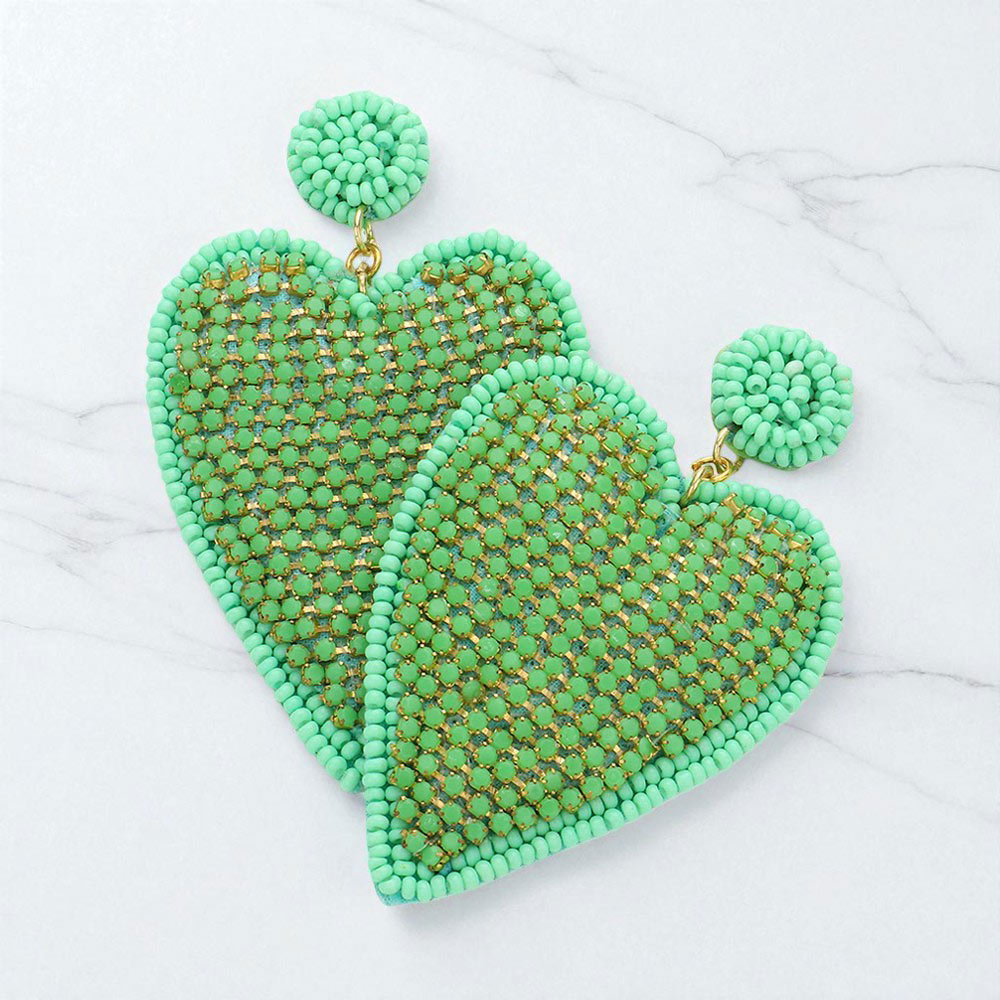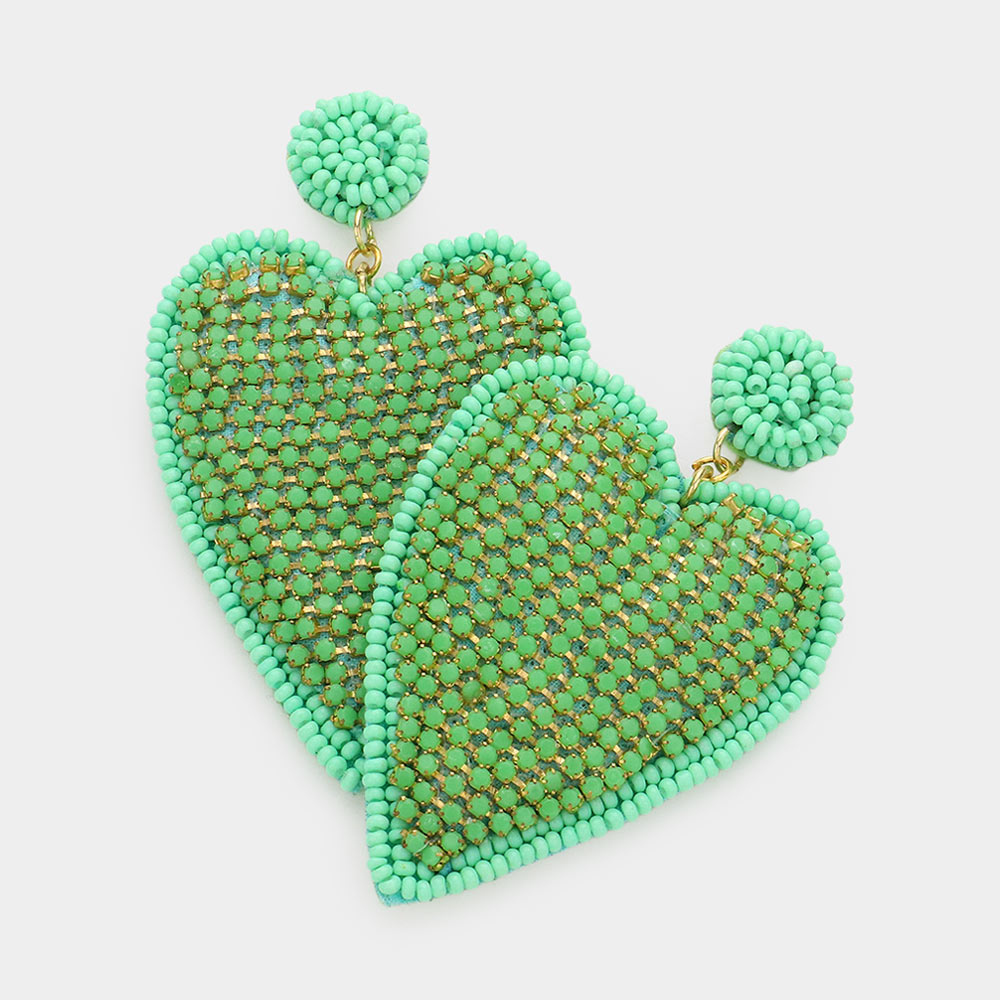 Felt Back Rhinestone Seed Beaded Heart Dangle Earrings