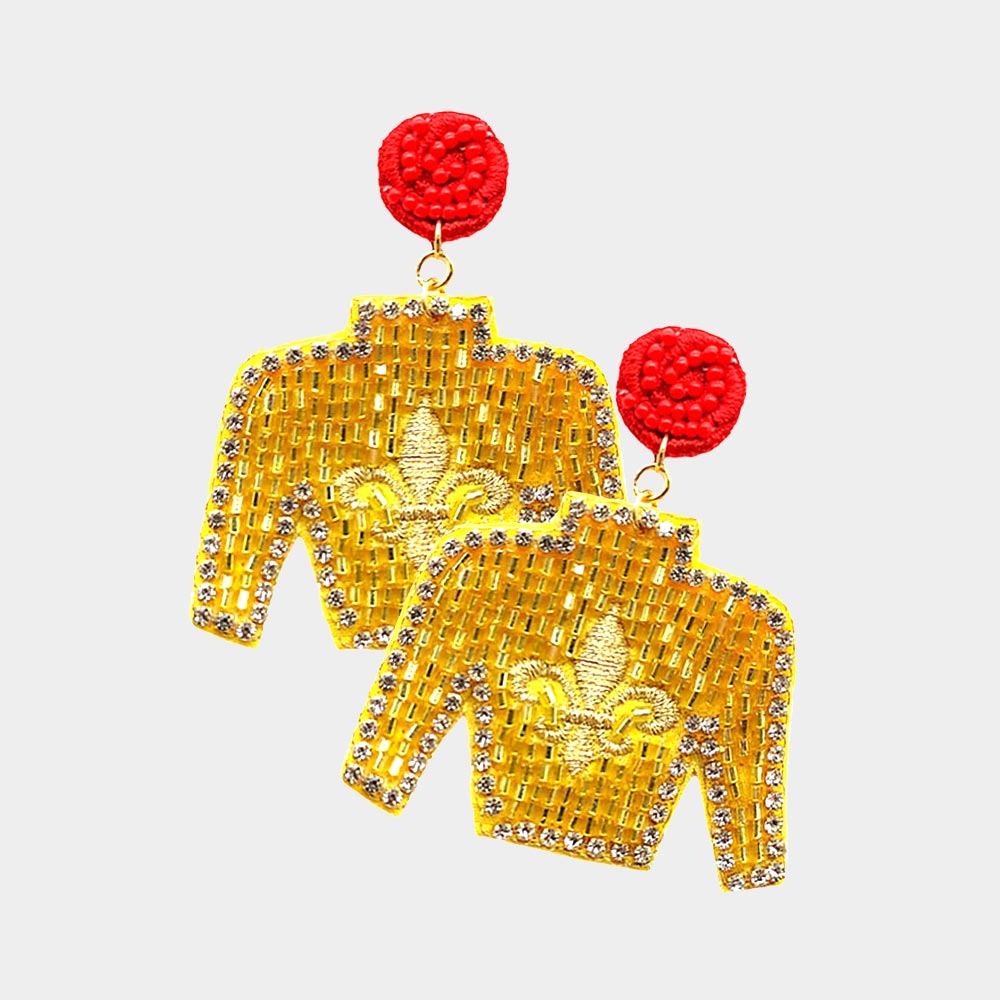 Felt Back Seed Beaded Fleur de Lis Top Dangle Earrings