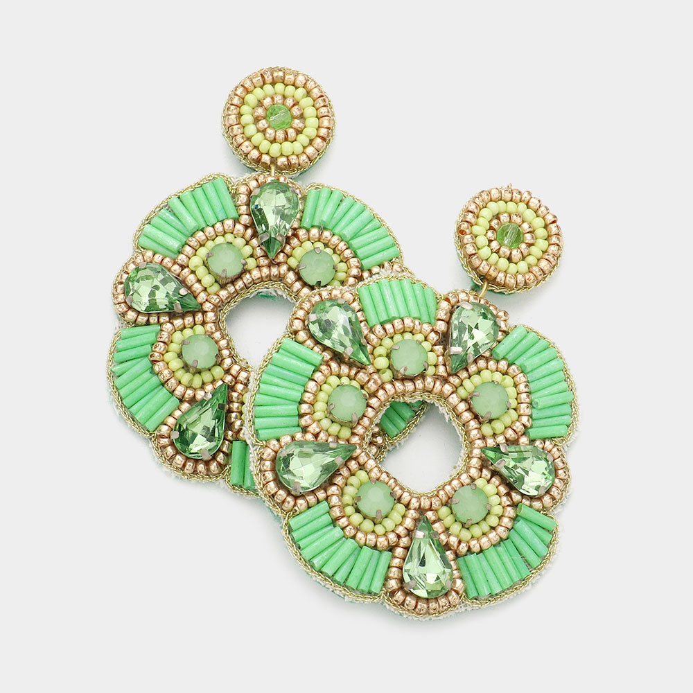Felt Back Stone Embellished Beaded Open Circle Dangle Earrings