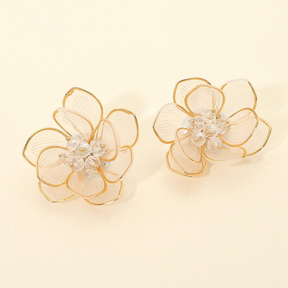 • These floral statement stud earrings feature a layered flower design that adds a refined, eye-catching touch to any look. Perfect for weddings, parties, and everyday wear, they offer a balanced blend of elegance and charm while elevating outfits with a timeless, feminine accent.