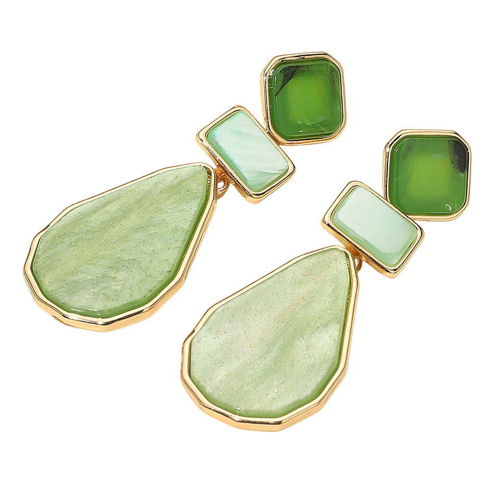 Details • Size : 1.1" X 2.9" • Post Back • Bold geometric drop earrings featuring layered shapes with glossy accents. These statement earrings combine modern artistry with timeless elegance, perfect for parties, evening wear, or elevating everyday outfits. Lightweight and stylish, they add a contemporary touch to any look. • Lead and Nickel Compliant