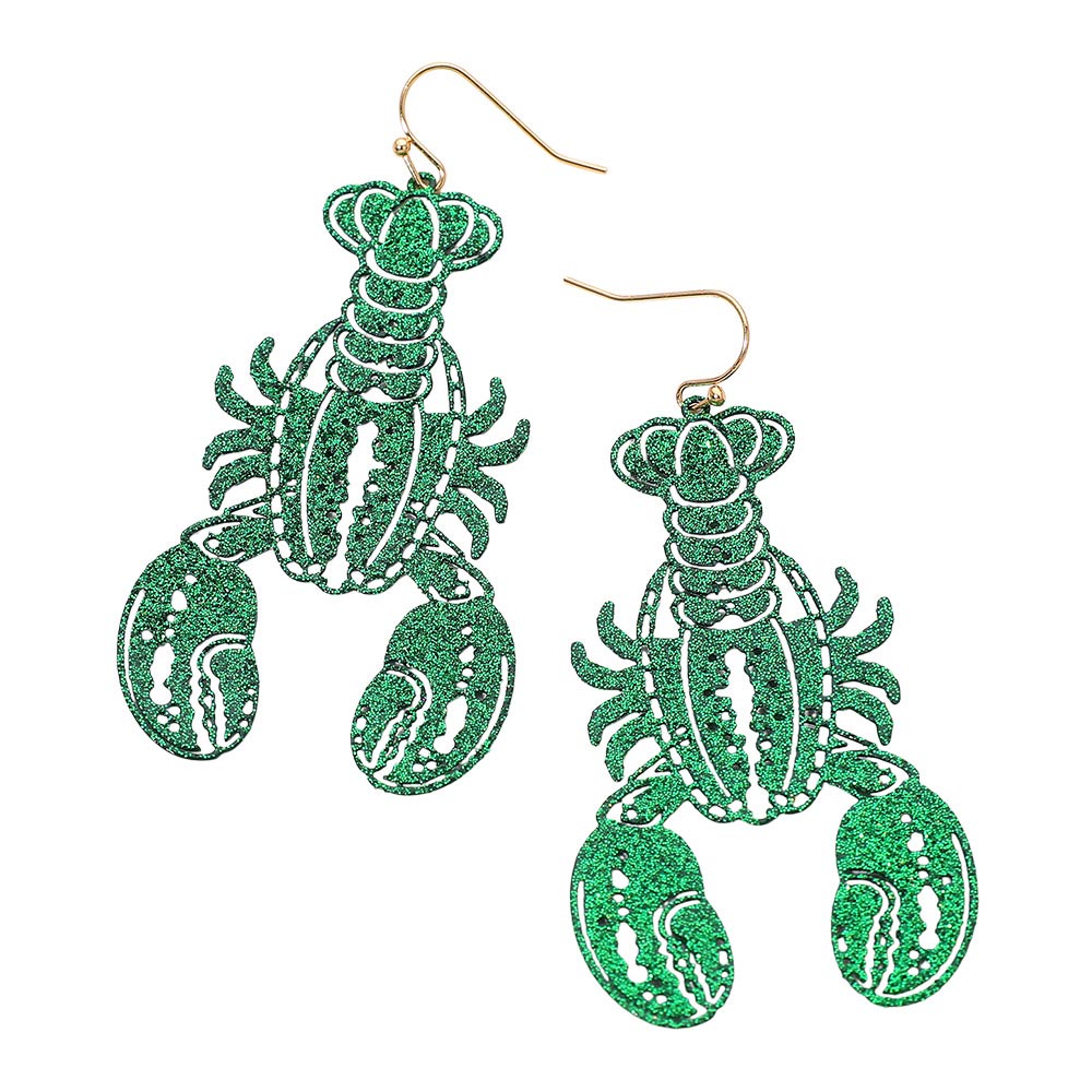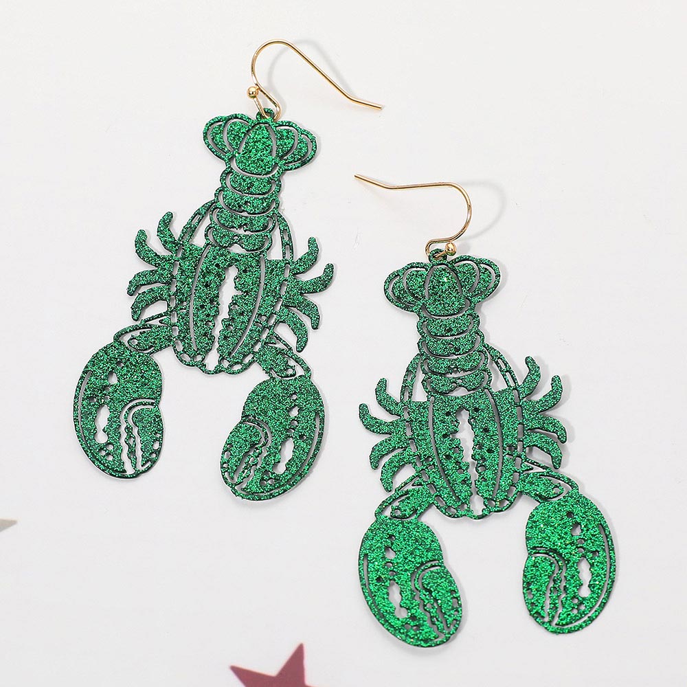 Glitter Cutout Mardi Gras Lobster Charm Drop Earrings