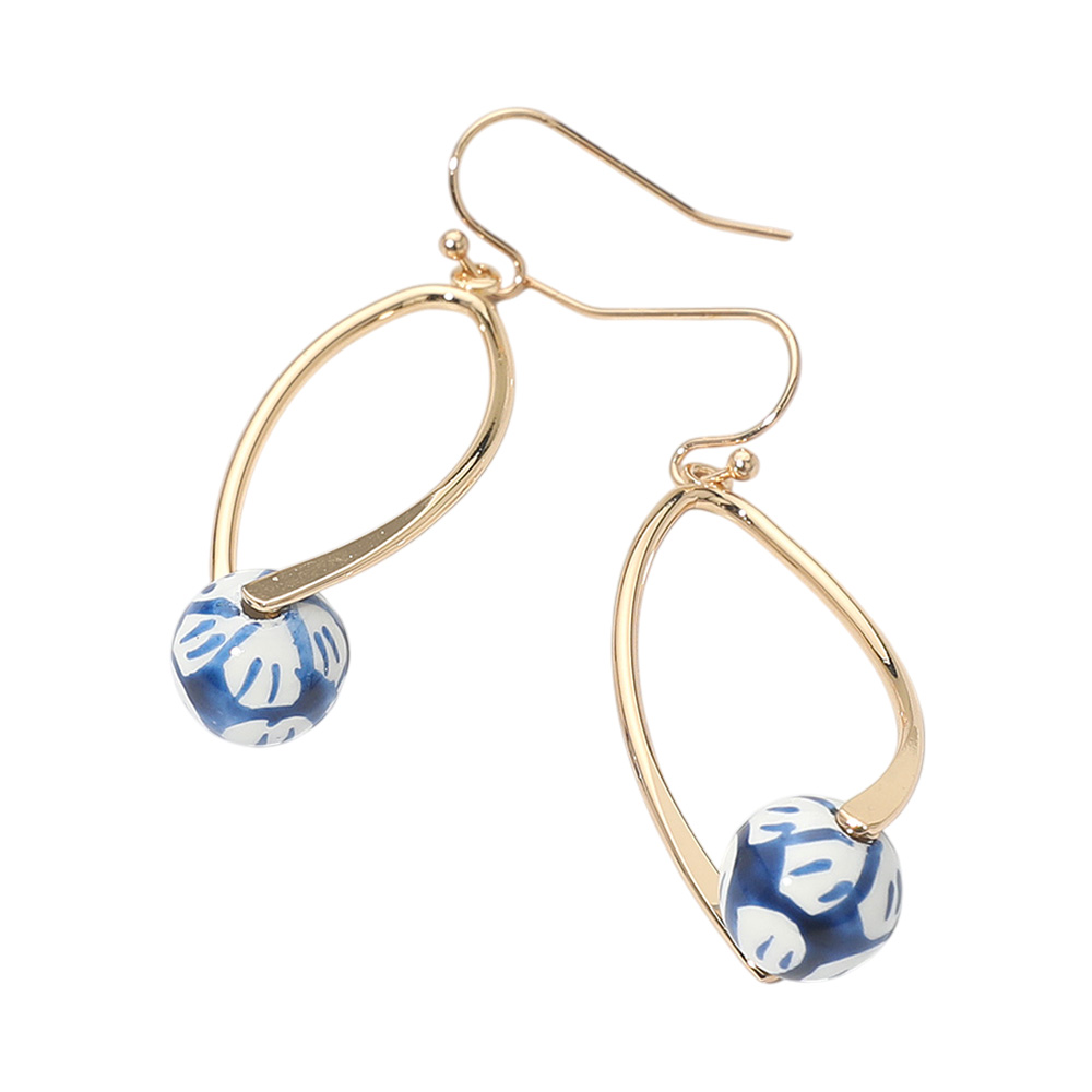 Gold Dipped Floral Ceramic Ball Accent Abstract Teardrop Dangle Earrings Gold Dipped Floral Ceramic Ball Accent Abstract Teardrop Dangle Earrings