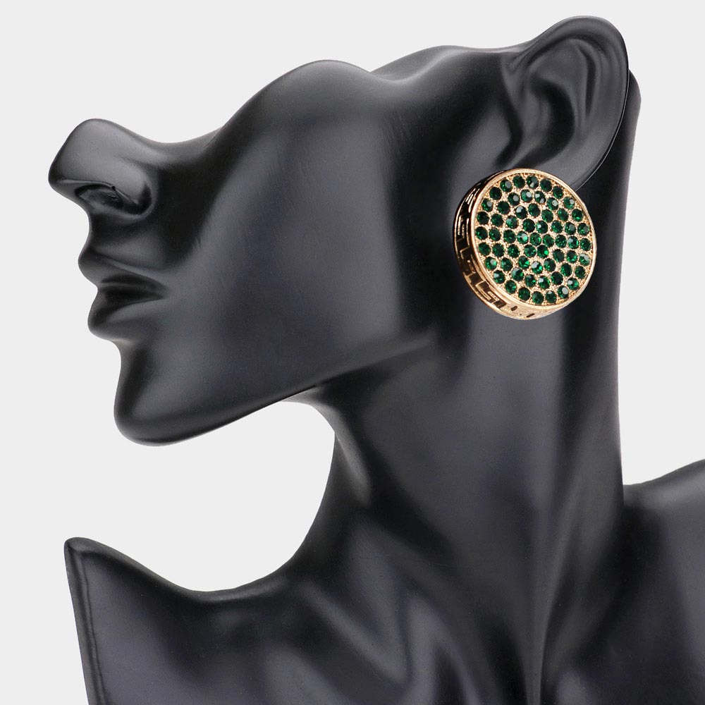 Greek Pattern Detailed Rhinestone Embellished Round Earrings Greek Pattern Detailed Rhinestone Embellished Round Earrings