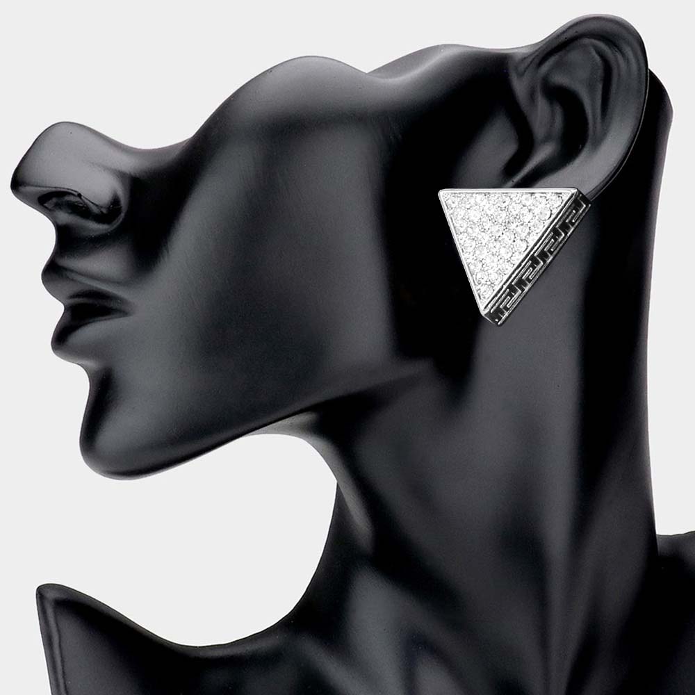Greek Pattern Detailed Rhinestone Embellished Triangle Earrings