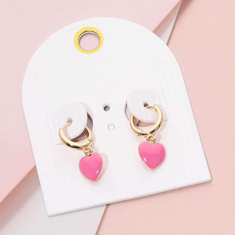 Details • Size : 0.5" X 0.8" • Huggie Back • Petite huggie earrings featuring a dangling heart charm for a soft, romantic touch. Lightweight and easy to wear, they add subtle movement and shine to everyday outfits while transitioning effortlessly to evening looks for a delicate yet eye-catching finishing detail. • Lead and Nickel Compliant