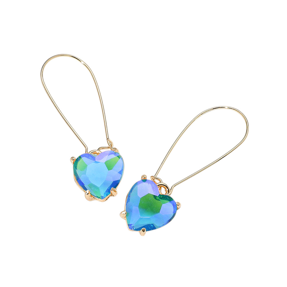 • Charming drop earrings featuring heart-cut stones suspended from delicate elongated hooks. The minimalist wire design complements the faceted heart shape, adding a touch of romance and elegance to any outfit.