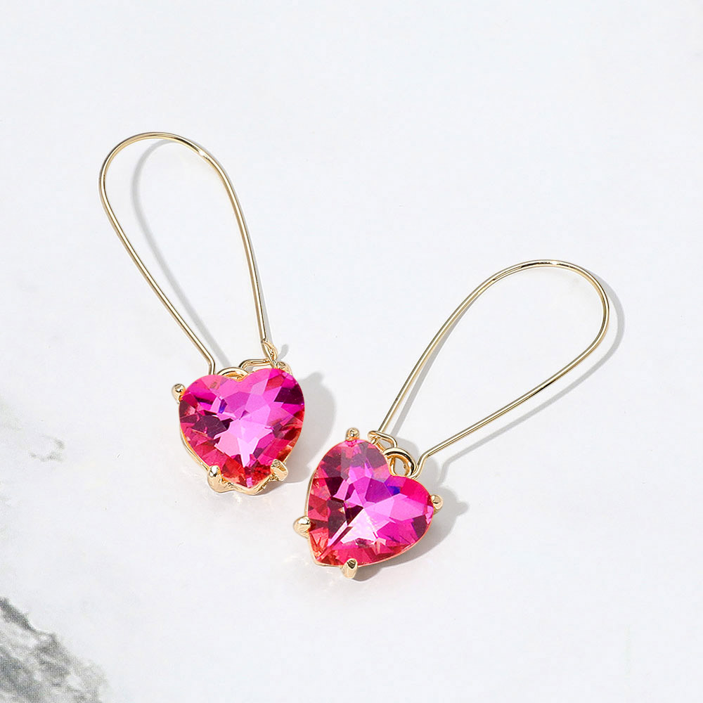 Details • Size : 0.6" X 2.1" • Kidney Ear Wire Back • Charming drop earrings featuring heart-cut stones suspended from delicate elongated hooks. The minimalist wire design complements the faceted heart shape, adding a touch of romance and elegance to any outfit. • Lead and Nickel Compliant