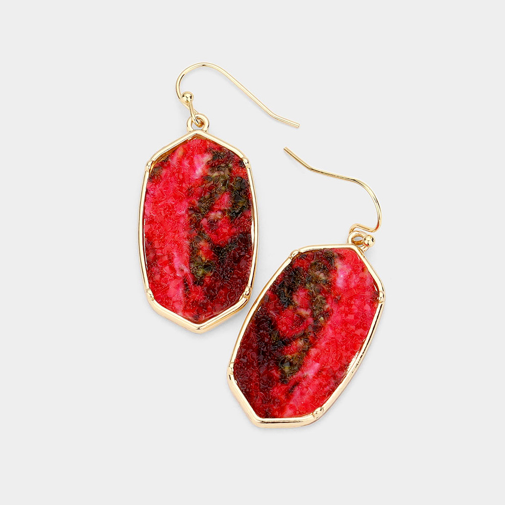 Pearl Around Marbled Enamel Hexagon Plate Dangle Earrings