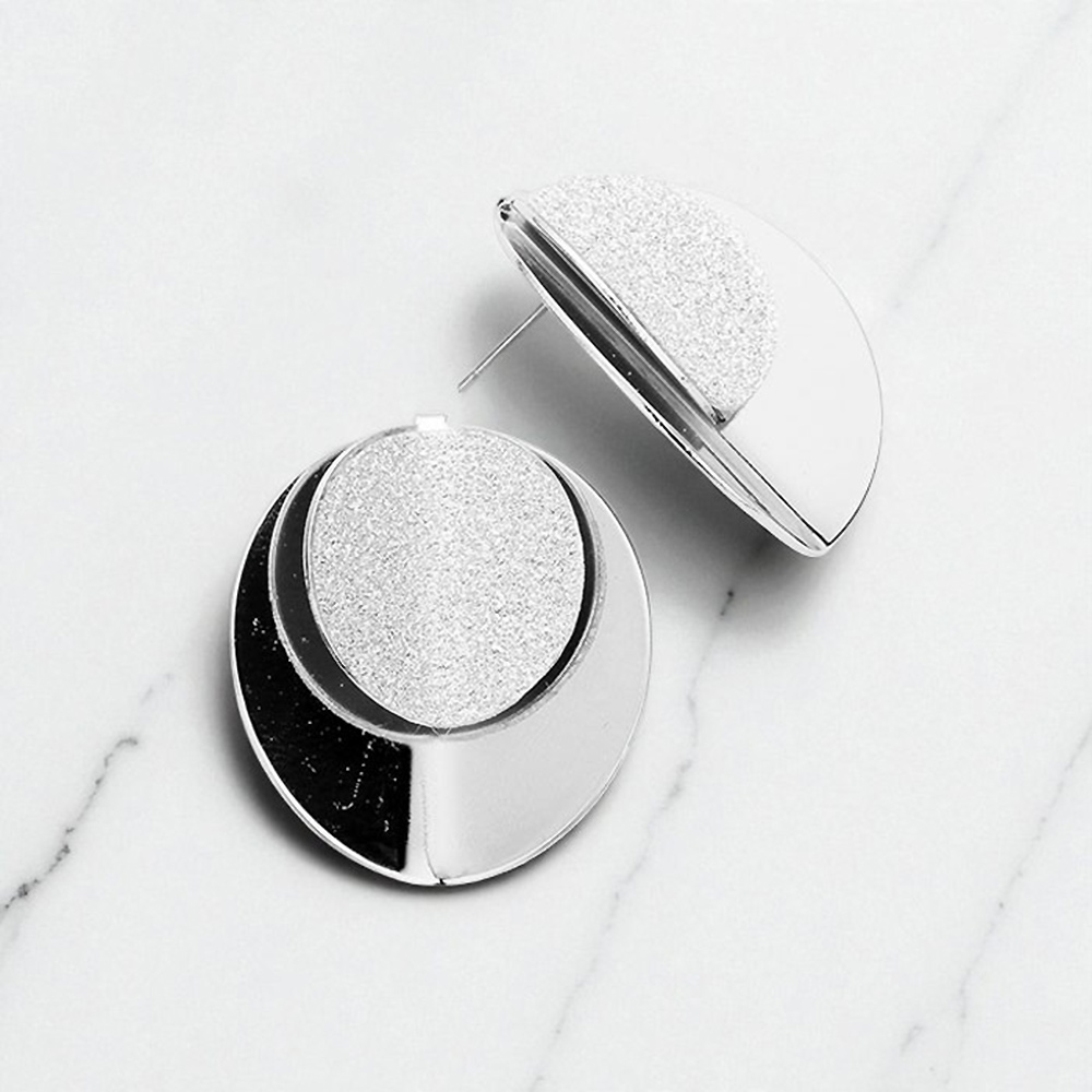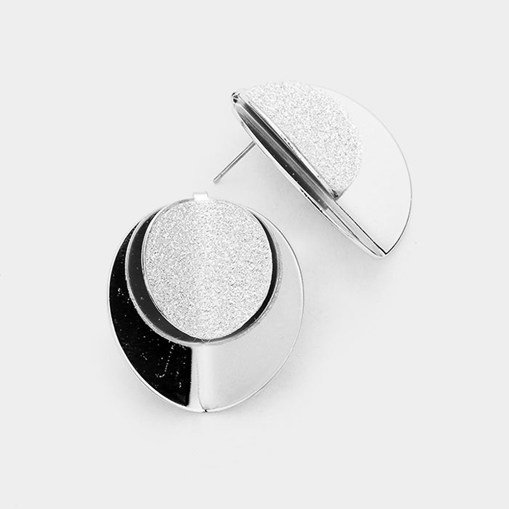 Layered Shimmering Fold Round Disc Stud Earrings