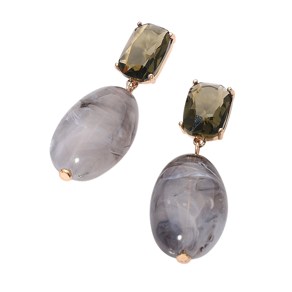 Details • Size : 0.7" X 2" • Post Back • Add instant elegance with these marbled oval pebble drop earrings featuring mixed-shape accents and a sleek vertical silhouette. Designed to catch the light and elevate any outfit, they transition effortlessly from daytime polish to evening statement wear with timeless appeal. • Lead and Nickel Compliant
