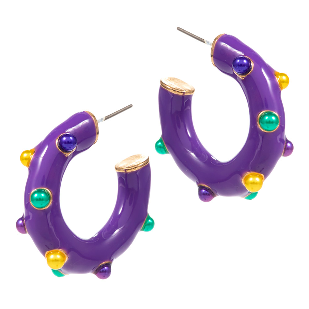 Details • Size : 1.1" L • Post Back • Bring fun and flair to your outfit with these playful beaded hoop earrings featuring glossy rounded accents for a festive touch. Their lightweight design makes them ideal for parties, celebrations, or everyday wear, adding vibrant personality to any look effortlessly. • Lead and Nickel Compliant