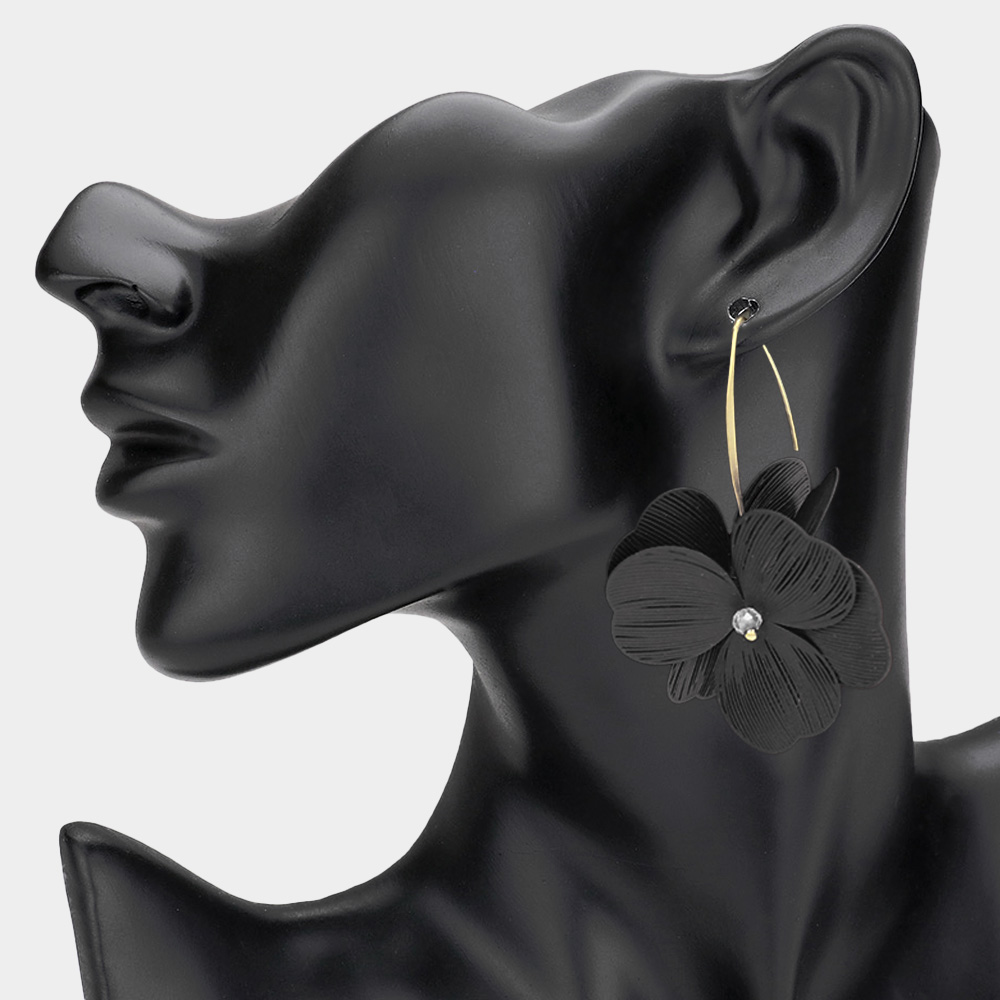 Embossed Floral Pattern Textured Metal Cross Pendant Necklace