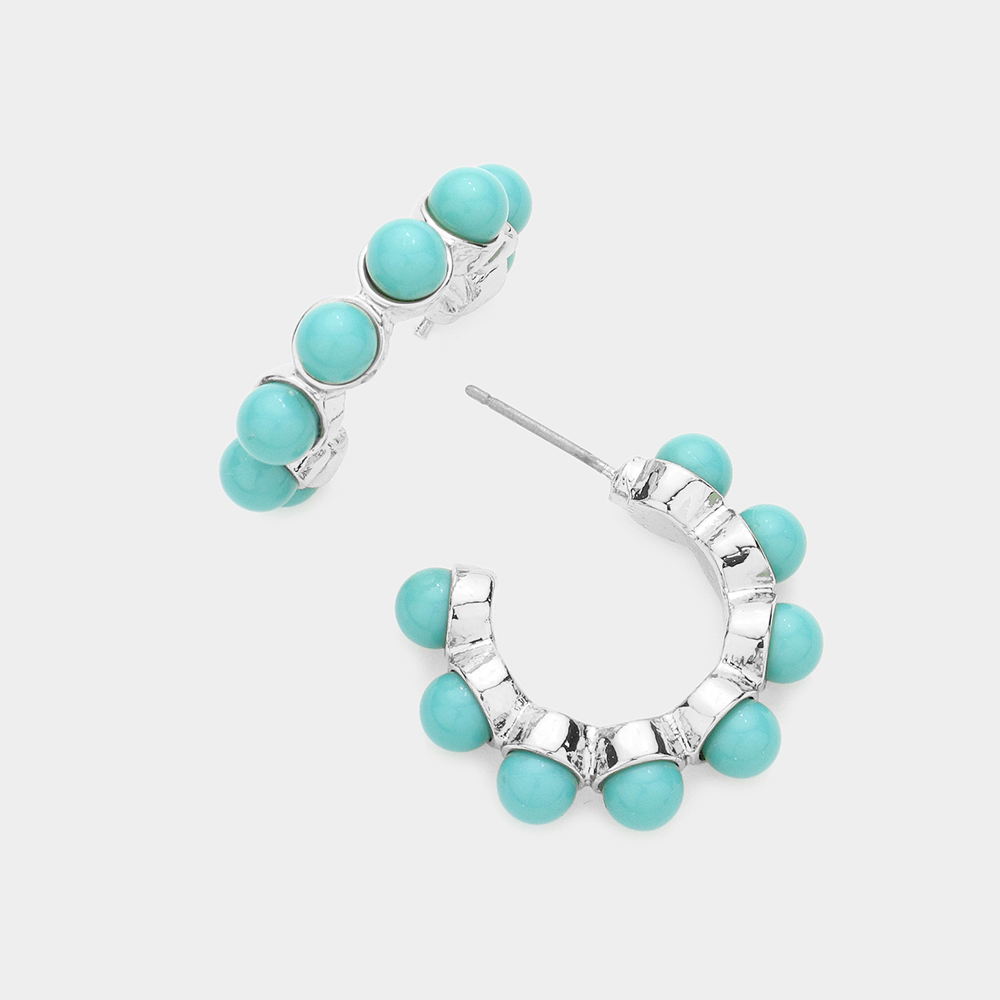 Natural Stone Embellished Hoop Earrings