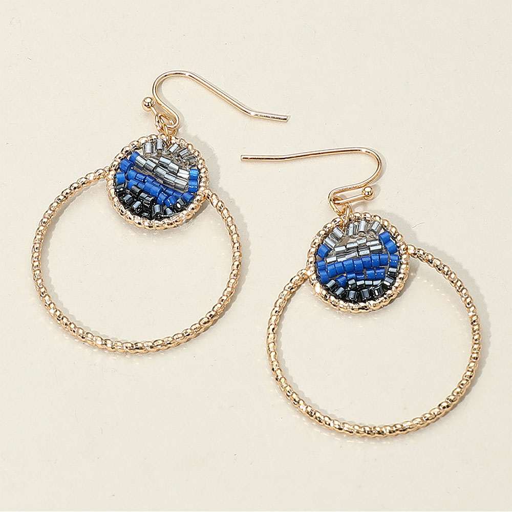 Details • Size : 1.4" X 1.8" • Fish Hook Back • Add artistic flair to your look with beaded circle drop hoop earrings featuring intricate seed bead detailing and textured hoops. Lightweight and stylish, these earrings blend bohemian charm with modern elegance, perfect for everyday wear or special occasions. • Lead and Nickel Compliant