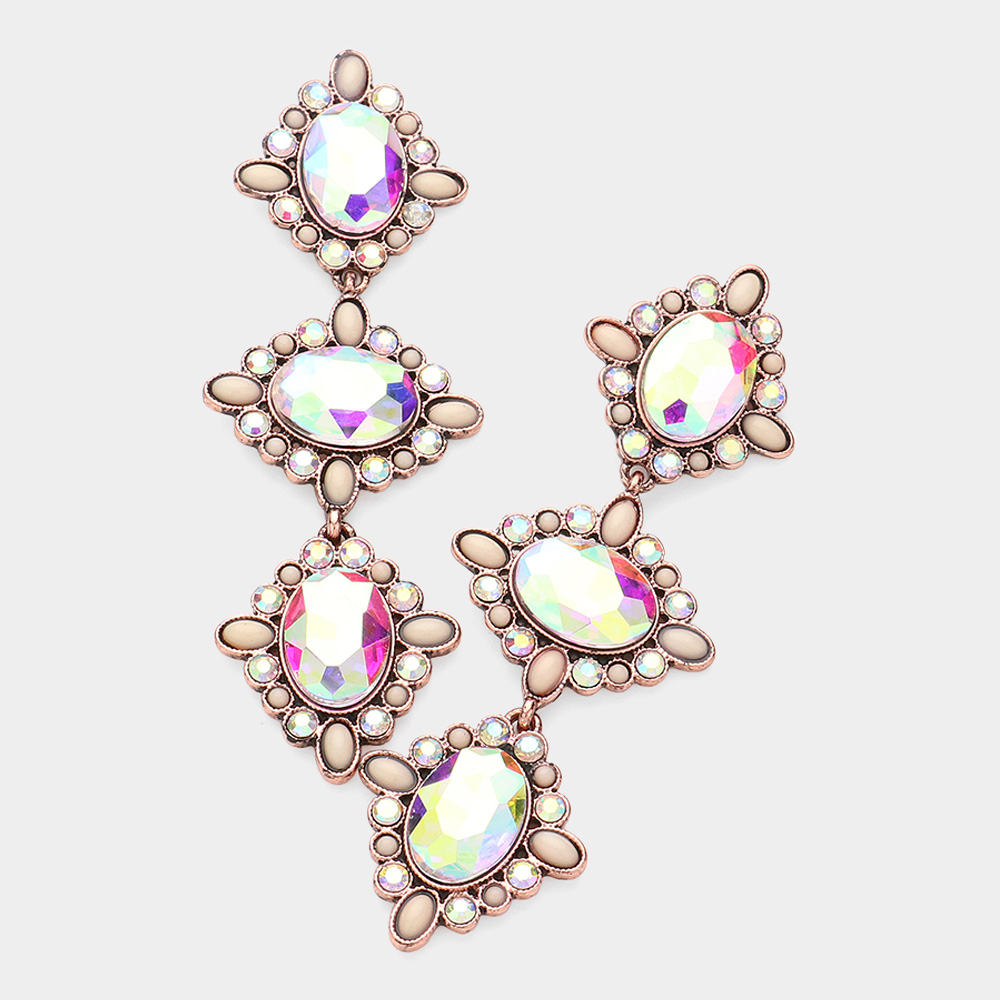 Oval Glass Stone Embellished Cluster Link Dropdown Earrings