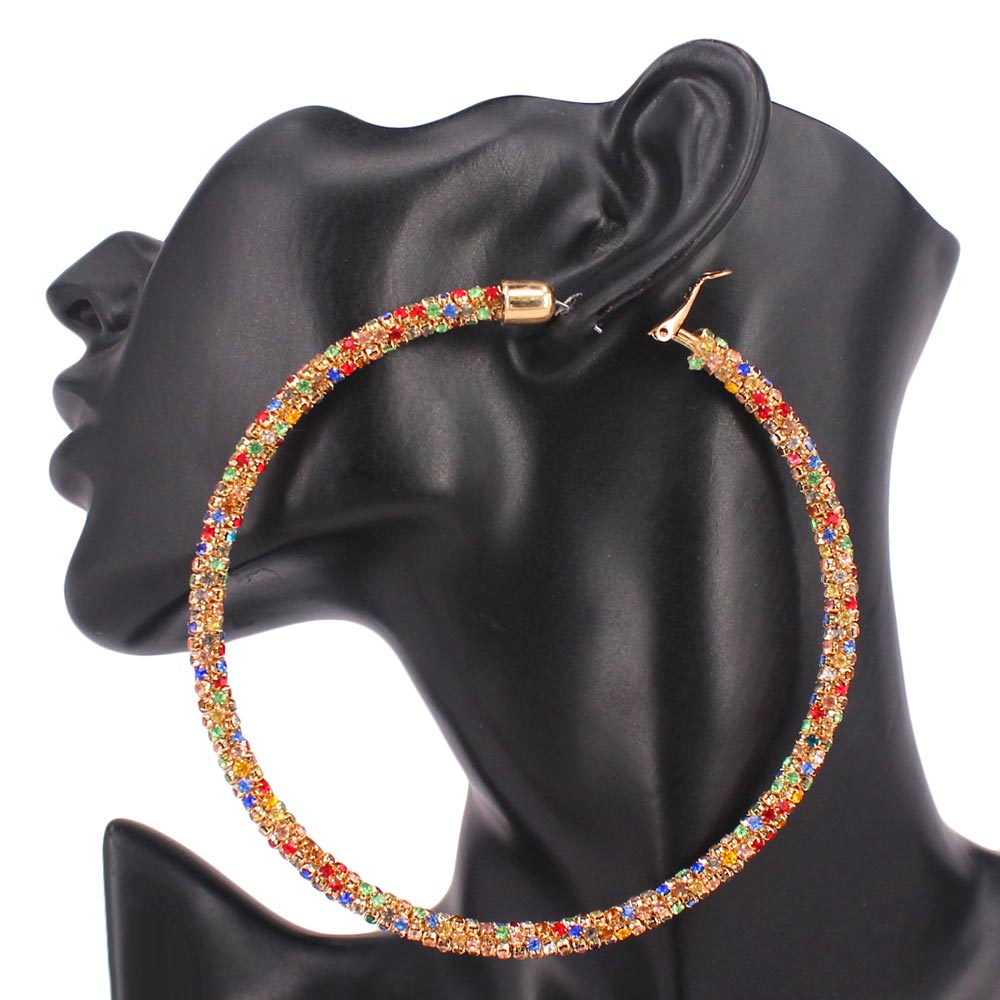 Details • Size : 4" X 4" • Omega Closure • Shine bright with these oversized rhinestone hoop earrings designed for maximum sparkle and glamour. Perfect for parties, night outs, or special events, they deliver bold style and lightweight comfort, making them the ultimate statement accessory for standout looks. • Lead and Nickel Compliant