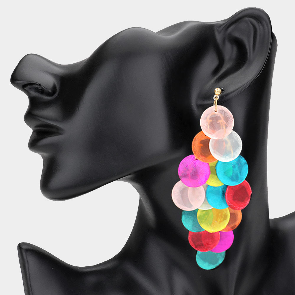 Details • Size : 1.5" X 3.25" • Post Back • These layered disc earrings create a cascading effect that moves beautifully. Lightweight and bold, they’re perfect for adding flair to any outfit from casual beachwear to chic evening looks. • Lead and Nickel Compliant