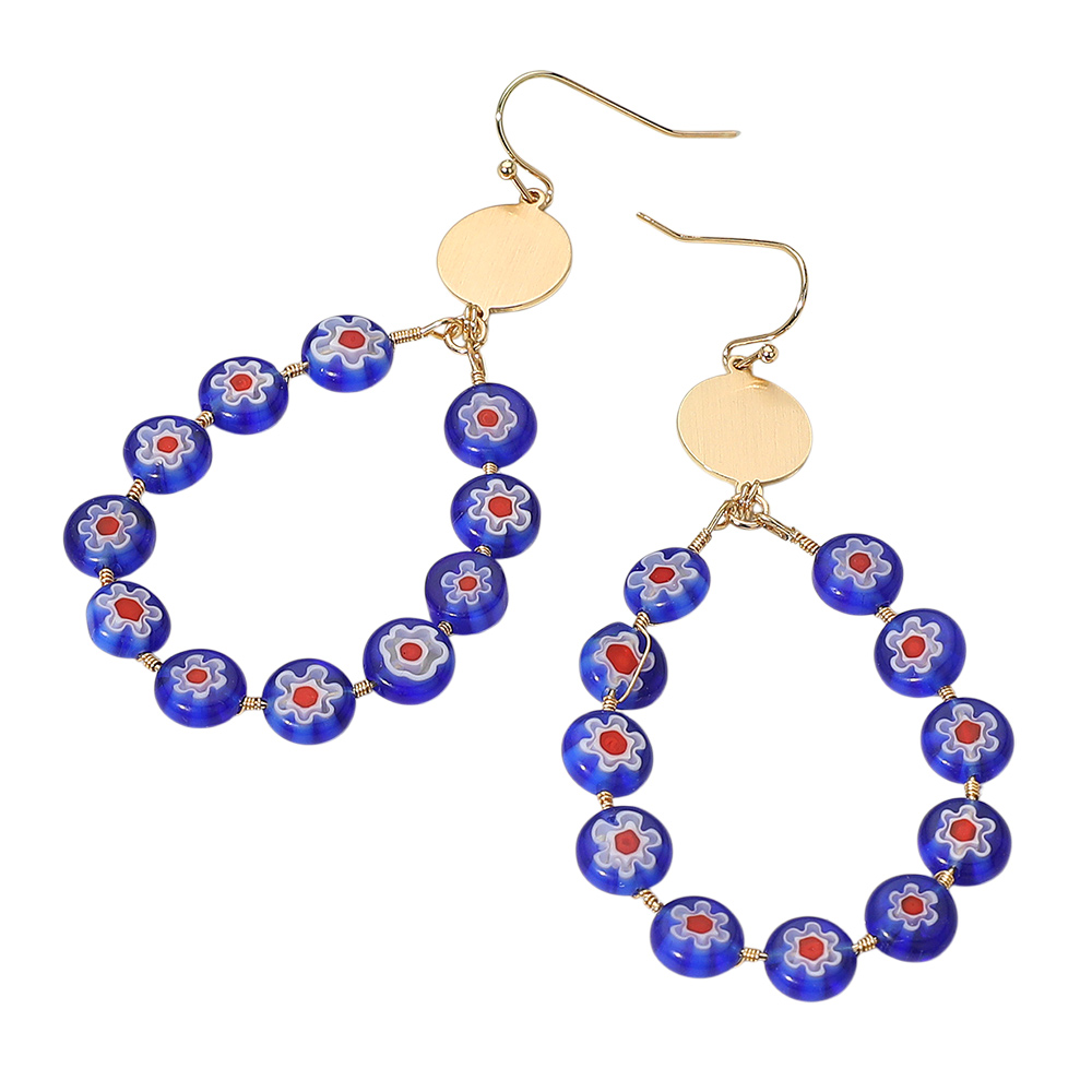 • Bring a playful touch to your style with these floral beaded hoop earrings featuring vibrant flower details and a sleek round disc accent. Lightweight and eye-catching, they are perfect for adding charm to everyday outfits or enhancing your look for special occasions.