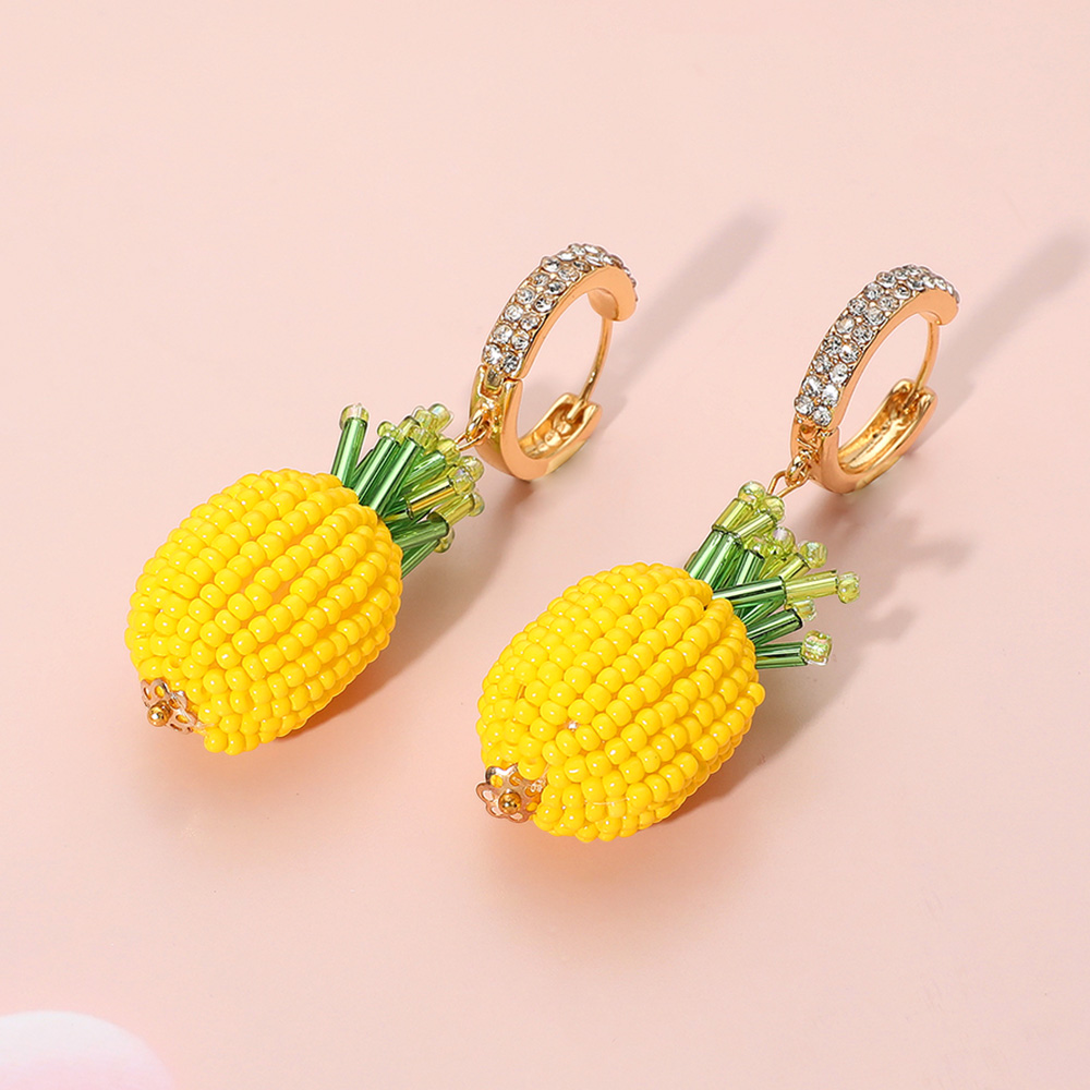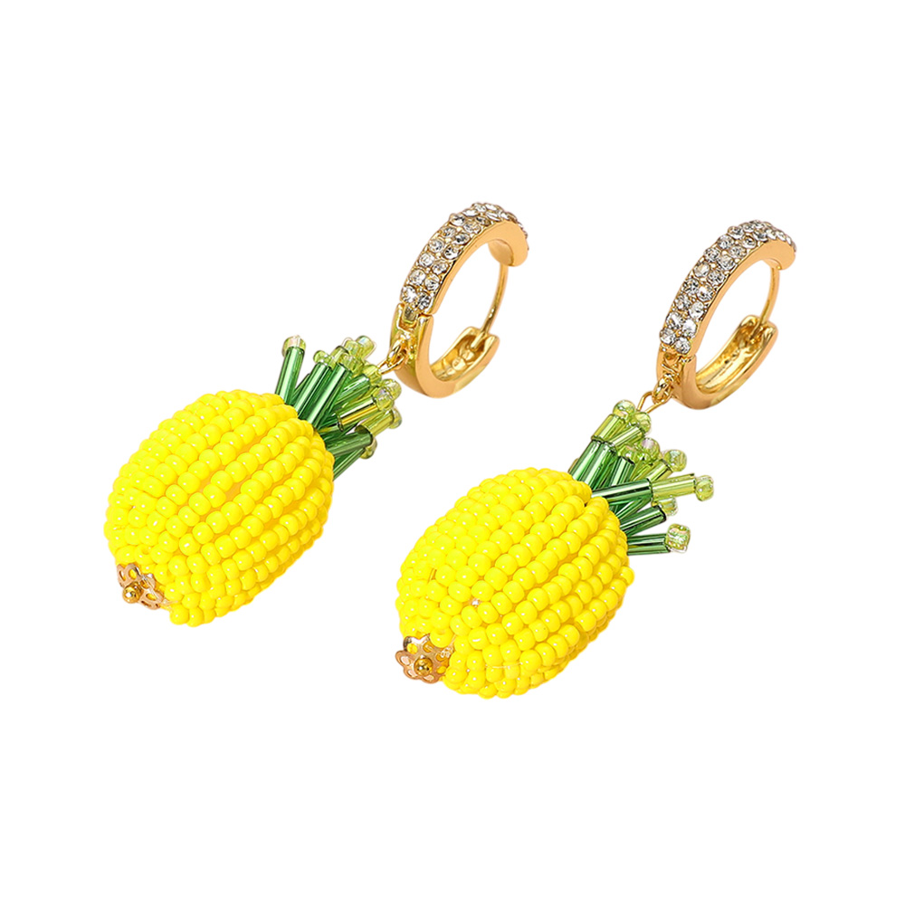 Pineapple Seed Beaded Dangle Huggie Hoop Earrings