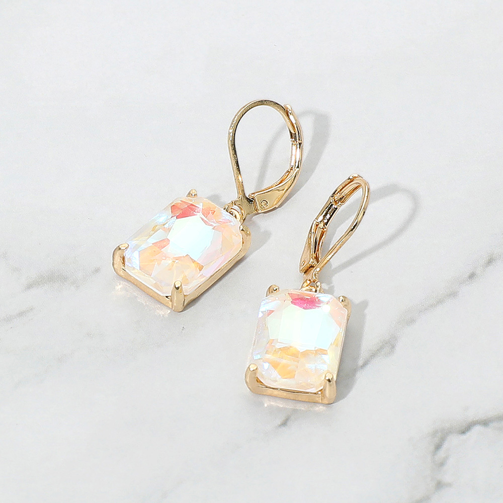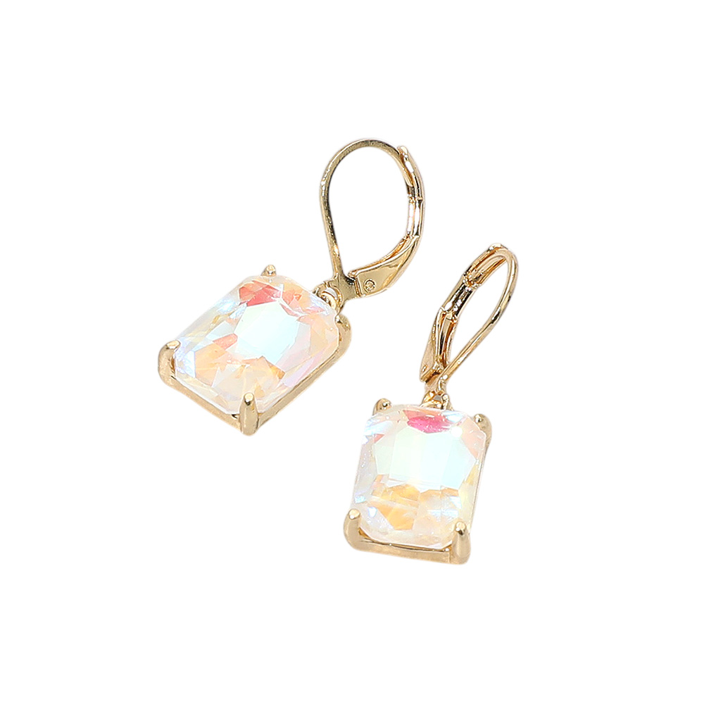 Rectangular Glass Stone Drop Dangle Earrings Rectangular Glass Stone Drop Dangle Earrings