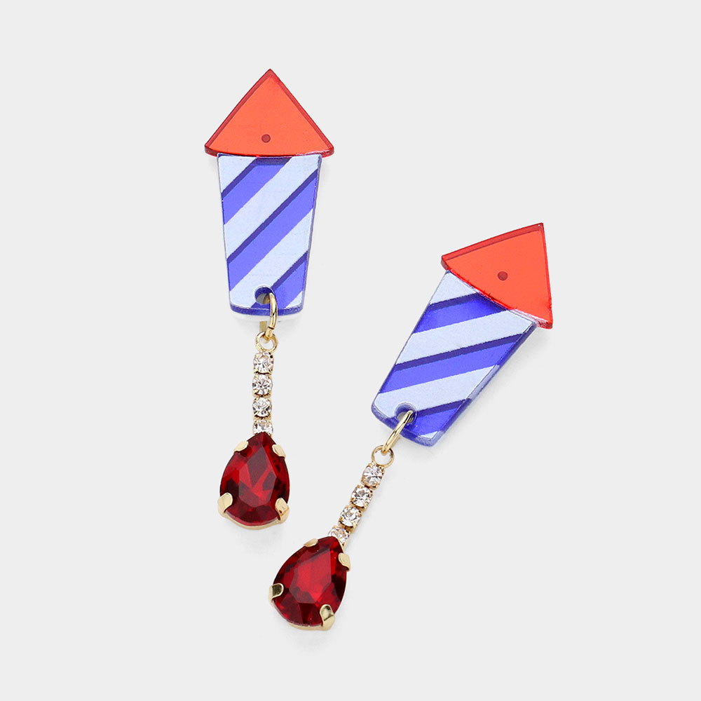 Resin American USA Flag Firework Teardrop Stone Cluster Dangle Earrings