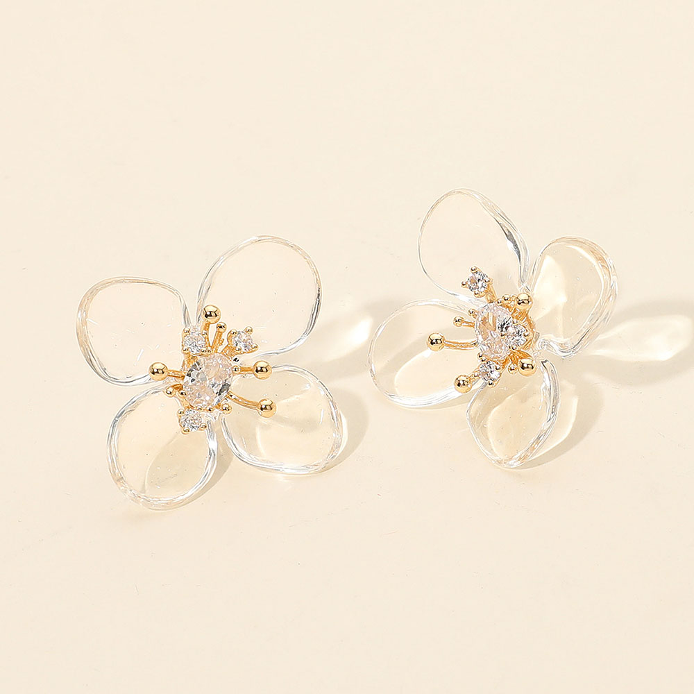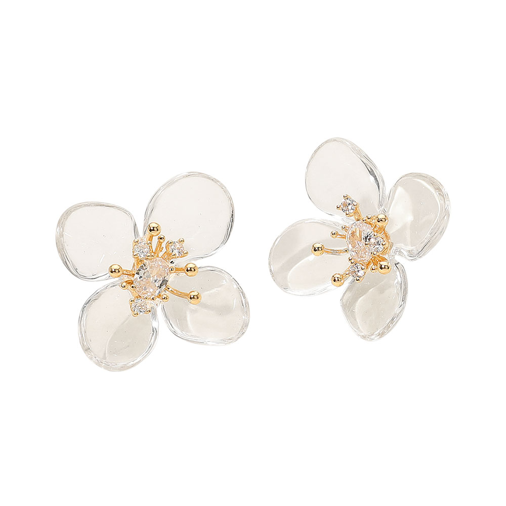 Rhinestone Accent Transparent Resin Petal Flower Earrings Rhinestone Accent Transparent Resin Petal Flower Earrings Rhinestone Accent Transparent Resin Petal Flower Earrings