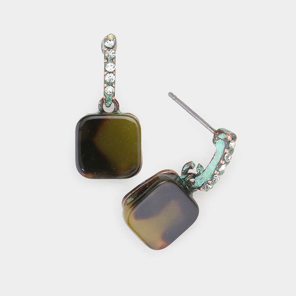 Rhinestone Metal Bar Celluloid Acetate Square Earrings