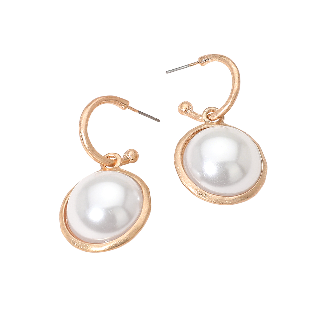 Details • Size : 0.8" X 1.75" • Post Back • Add a refined sparkle to your style with these Round Pearl Drop Hoop Earrings. Featuring a stunning faceted stone set in a sleek round frame, these earrings offer timeless charm and elegance, perfect for both everyday wear and evening occasions. • Lead and Nickel Compliant