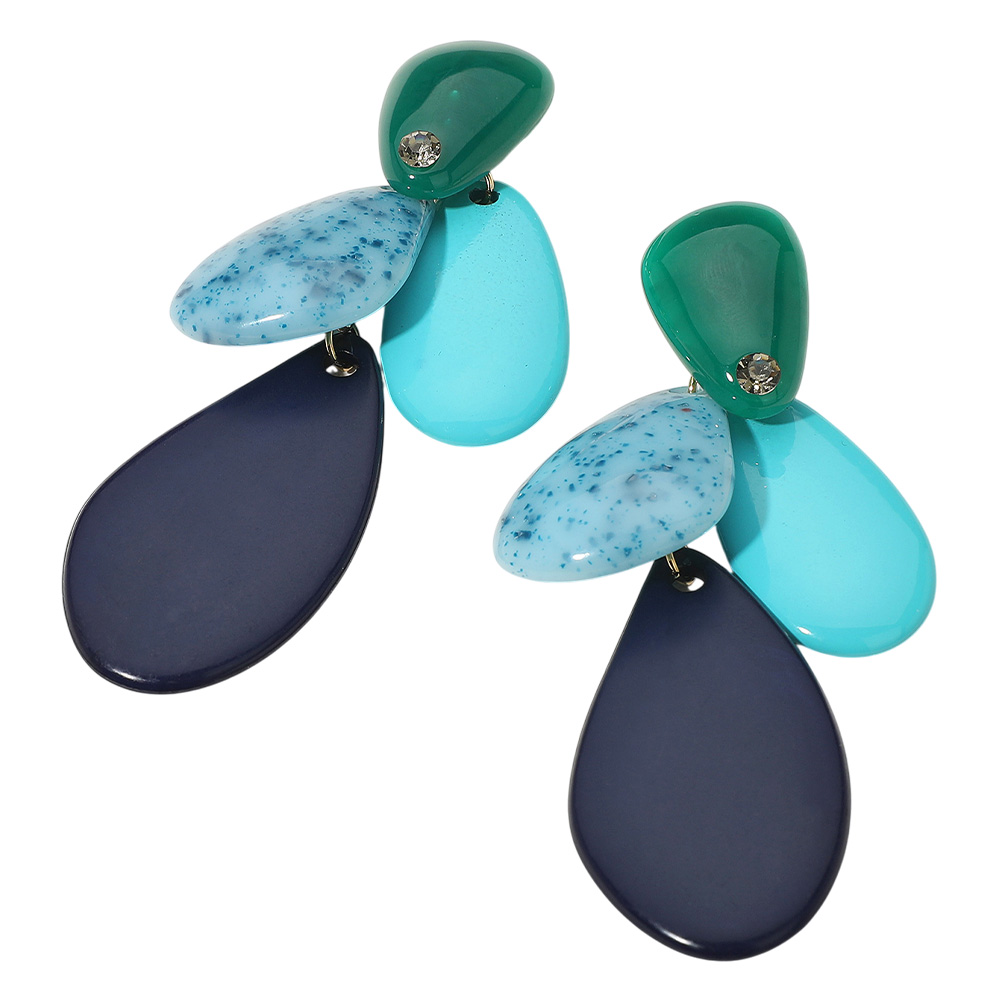 Details • Size : 1.5" X 3.8" • Post Back • Layered teardrop statement earrings crafted with bold shapes and smooth finishes. Designed for standout style, these earrings blend artistic flair with elegance, perfect for evening looks, special occasions, or adding a modern touch to casual wear. Lightweight for all-day comfortable wear. • Lead and Nickel Compliant