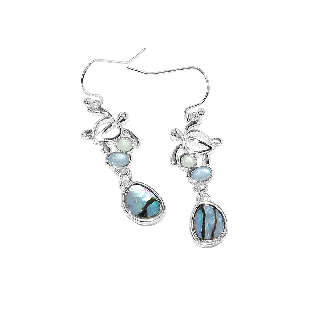 Sea Glass Abalone Turtle Link Dropdown Dangle Earrings