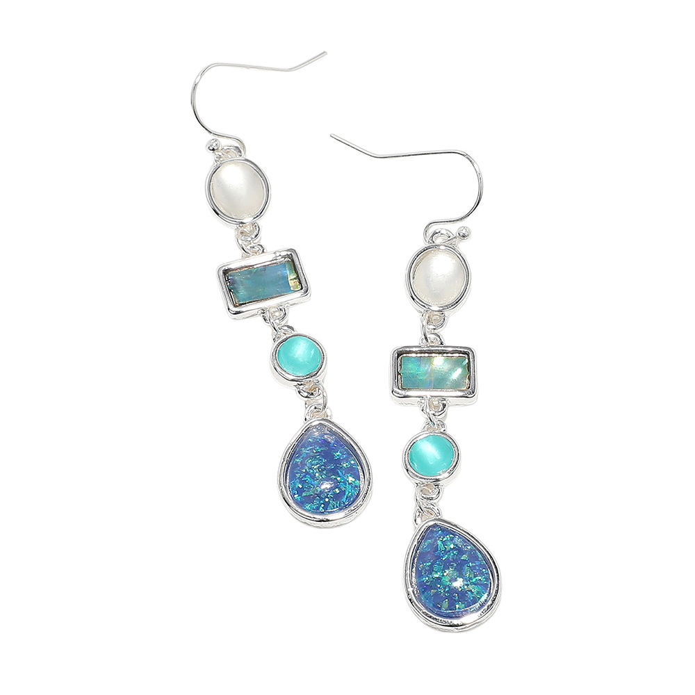 Sea Glass Cluster Link Dropdown Earrings